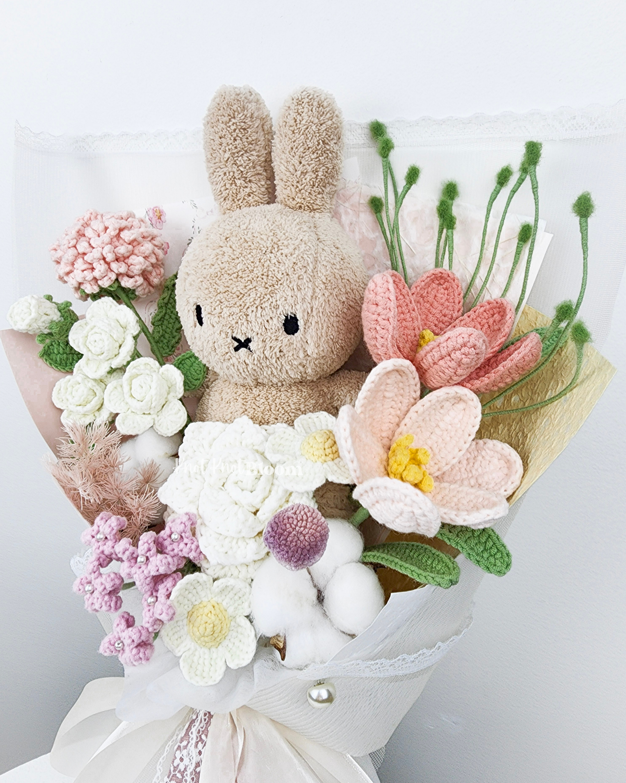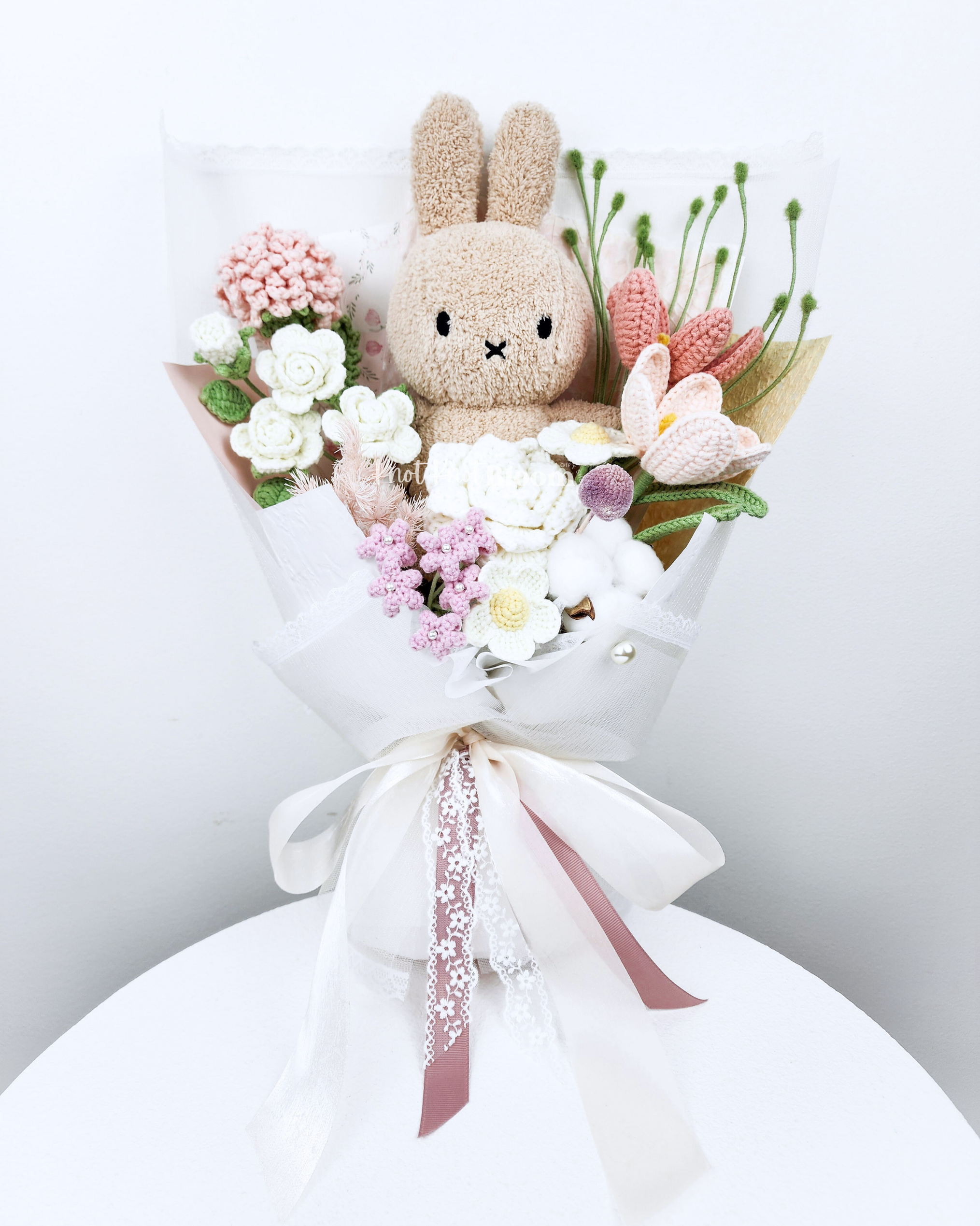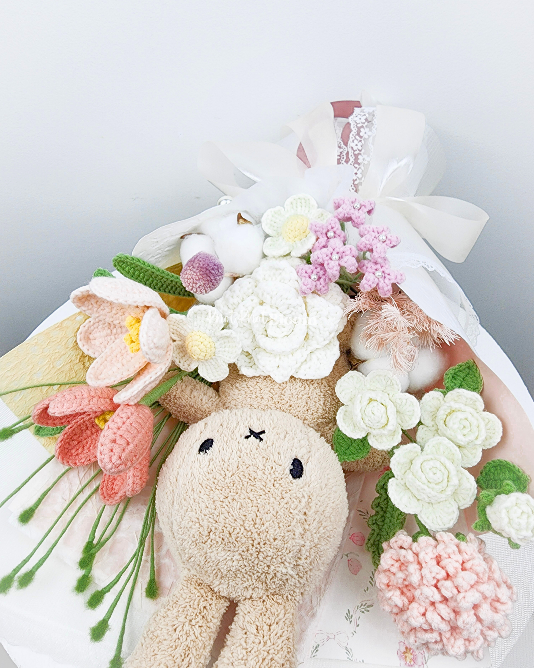 20cm Milk Tea Colour Plushie Crochet Flowers Bouquet Plushie Bridal Bouquet Birthday Valentine’s Day Gift