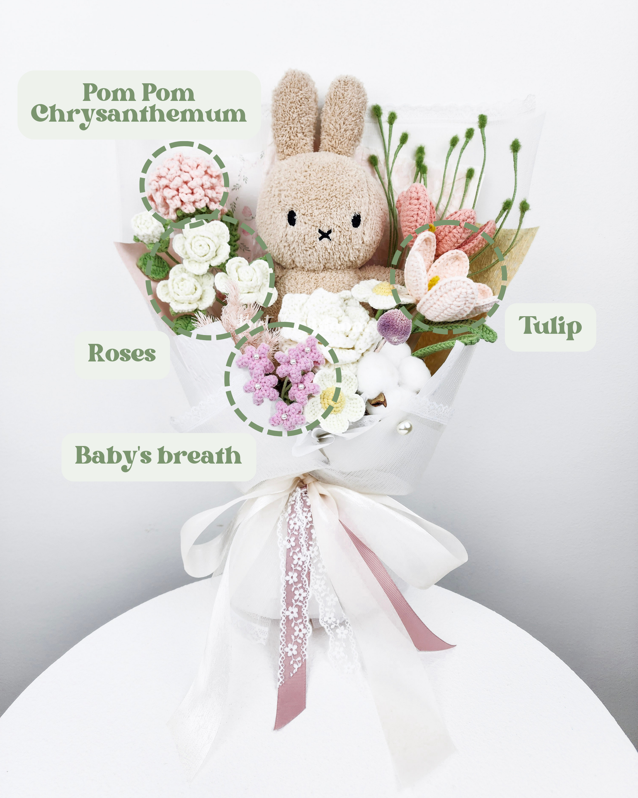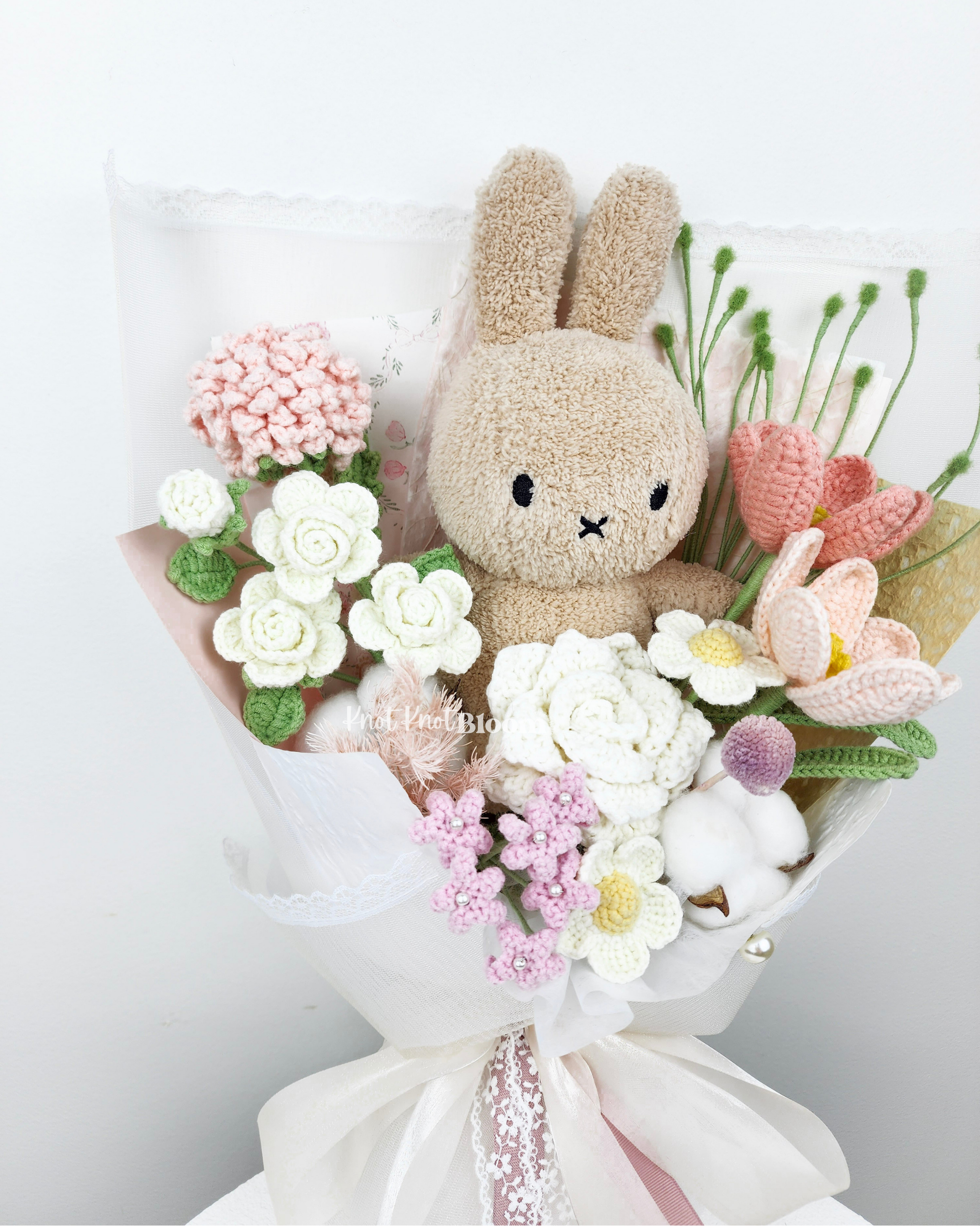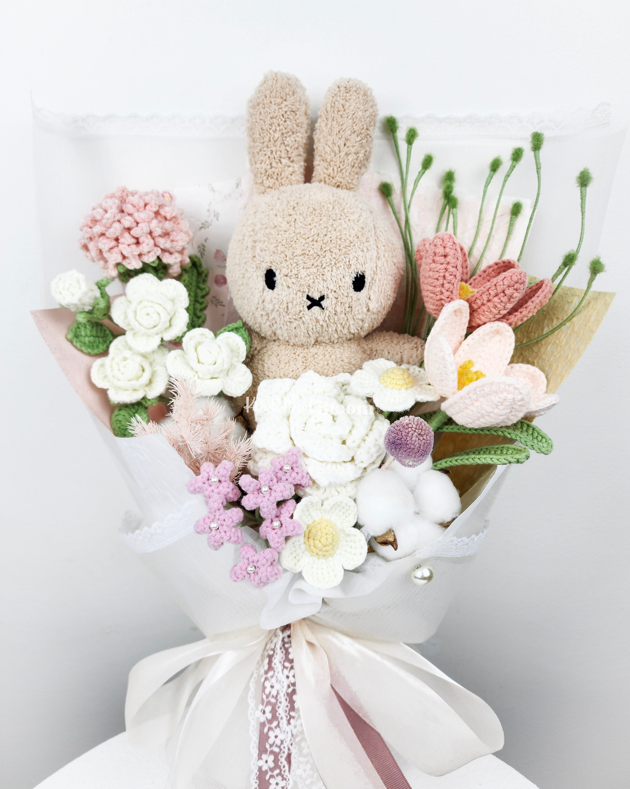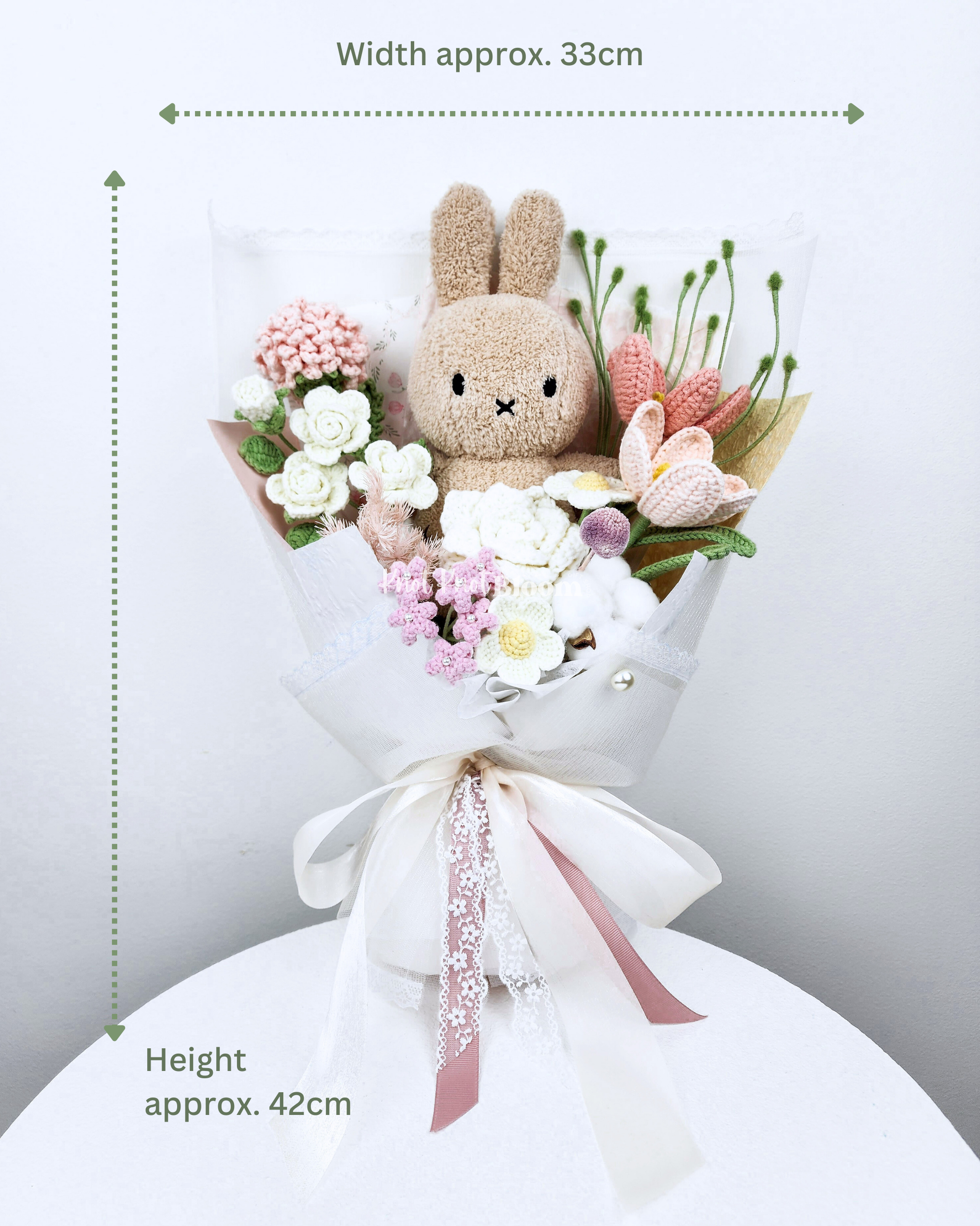 20cm Milk Tea Colour Plushie Crochet Flowers Bouquet Plushie Bridal Bouquet Birthday Valentine’s Day Gift