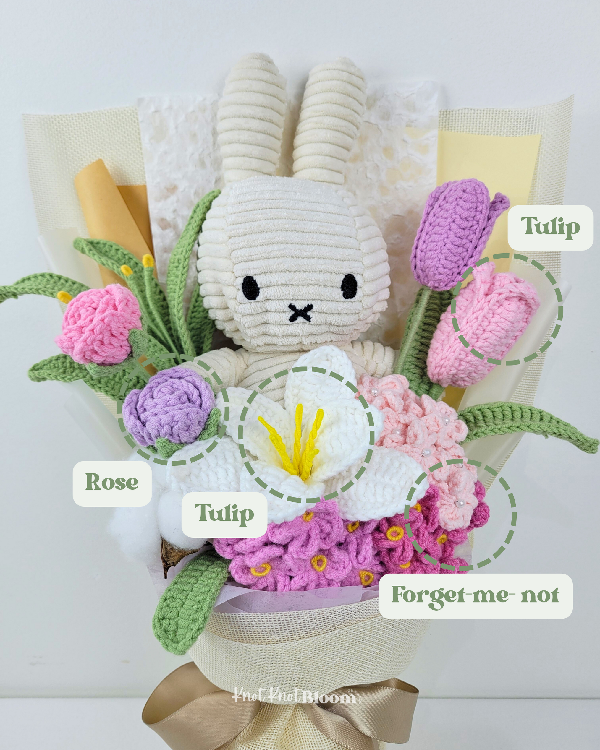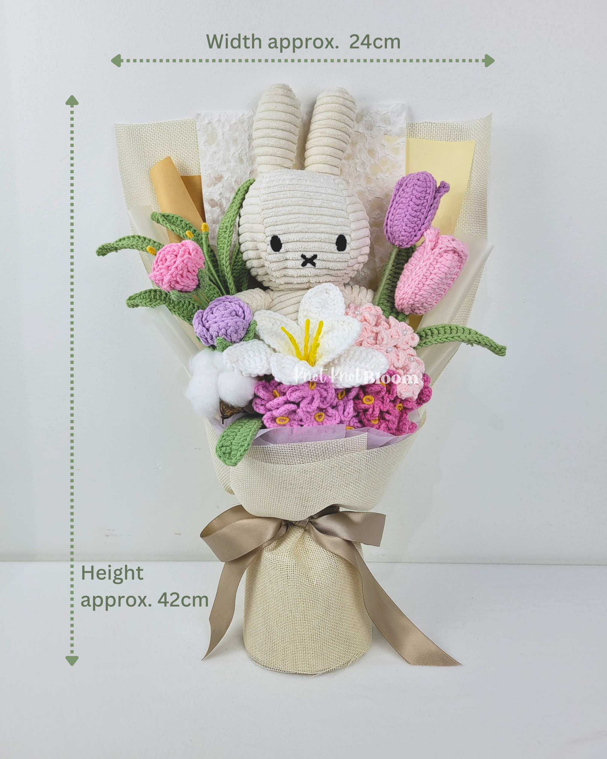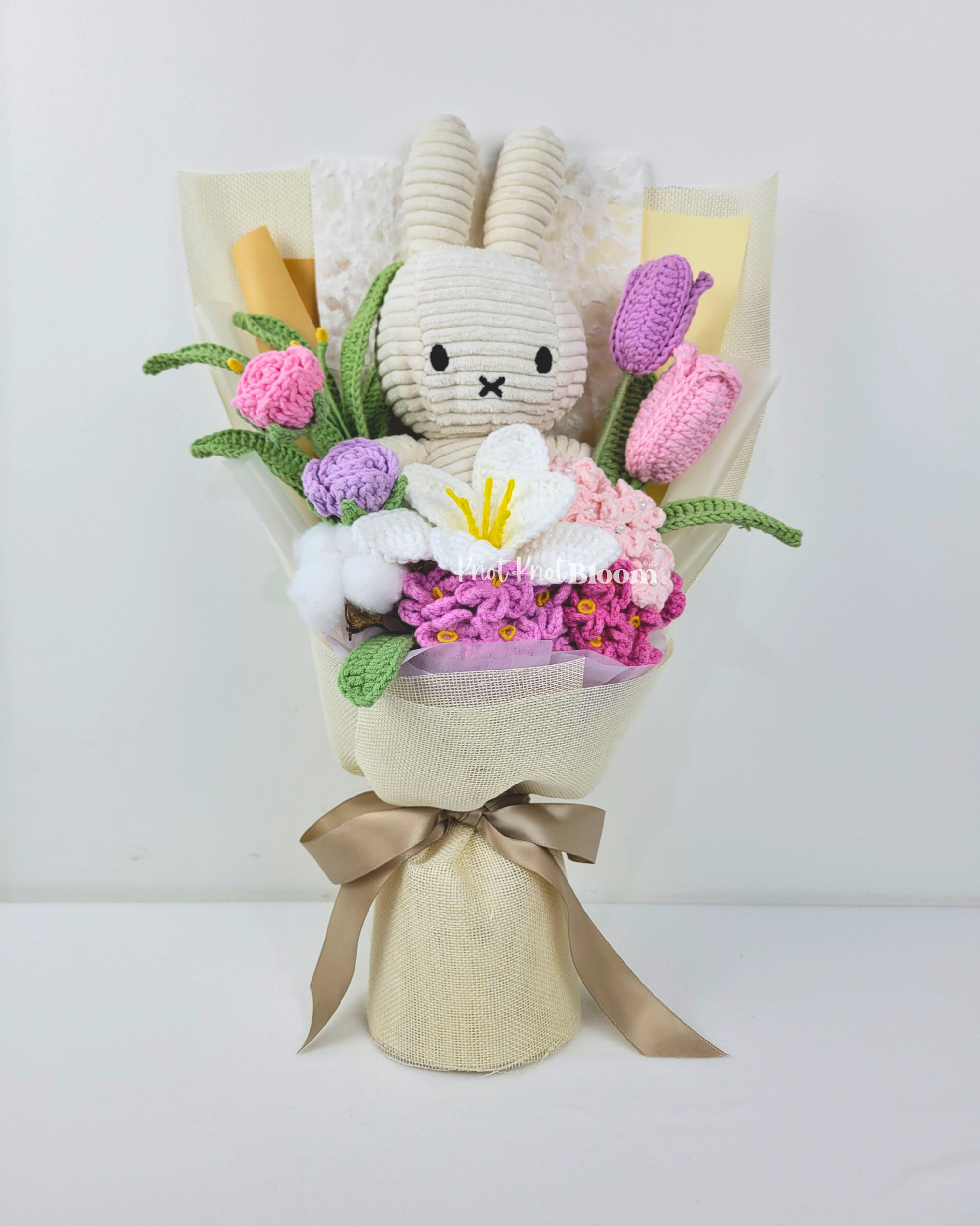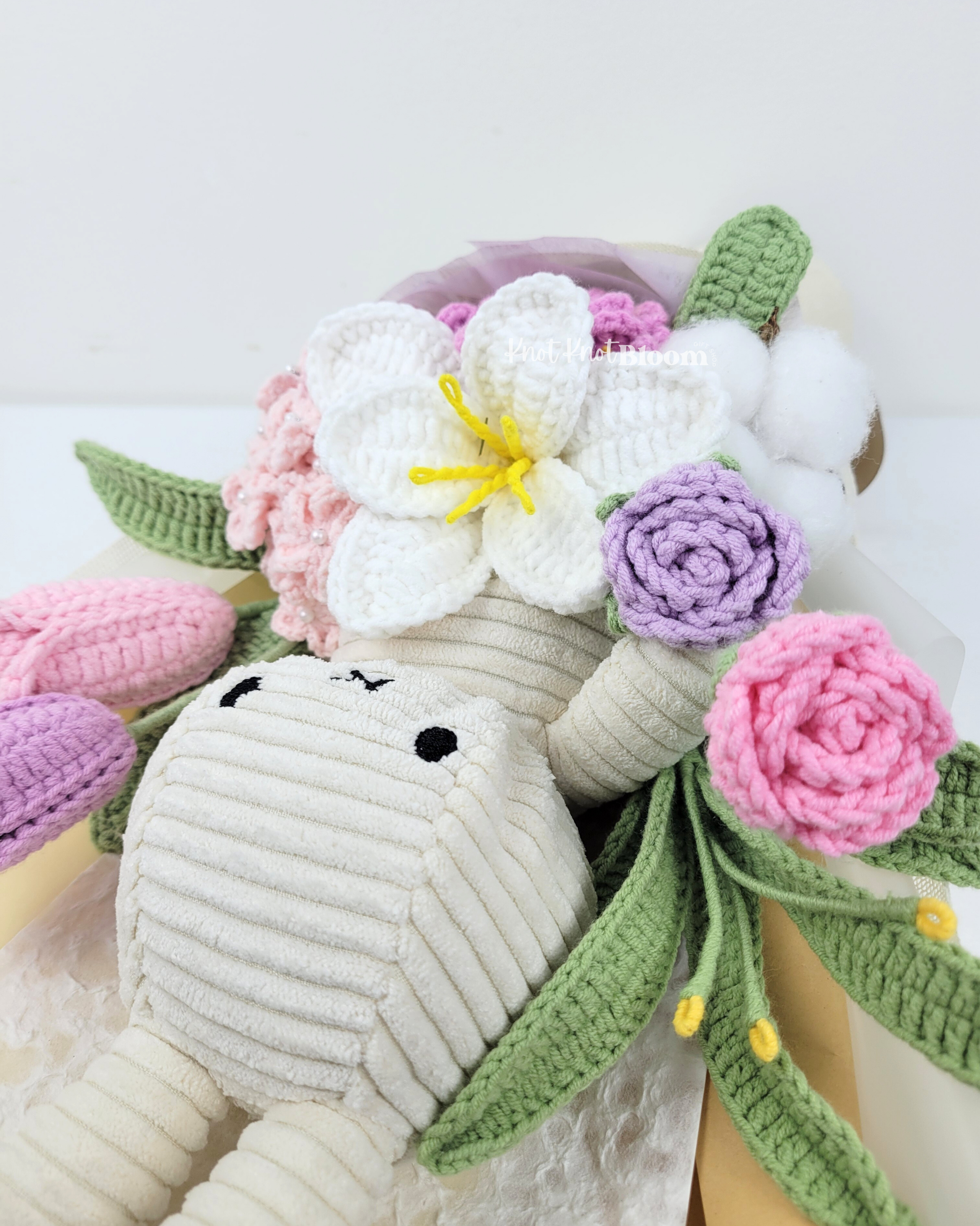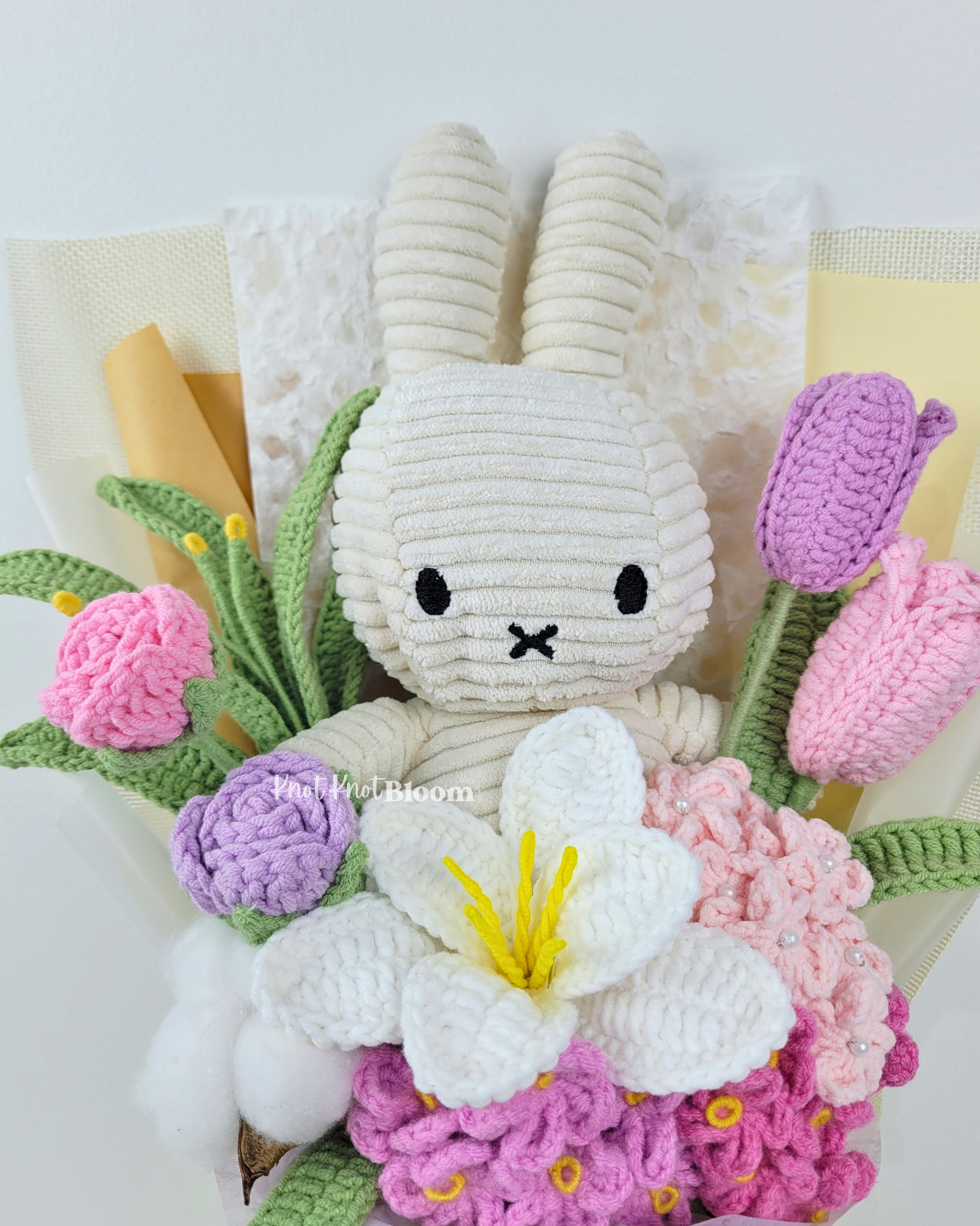 20cm White Plushie Crochet Flowers Bouquet Graduation Birthday Valentine’s Day Gift