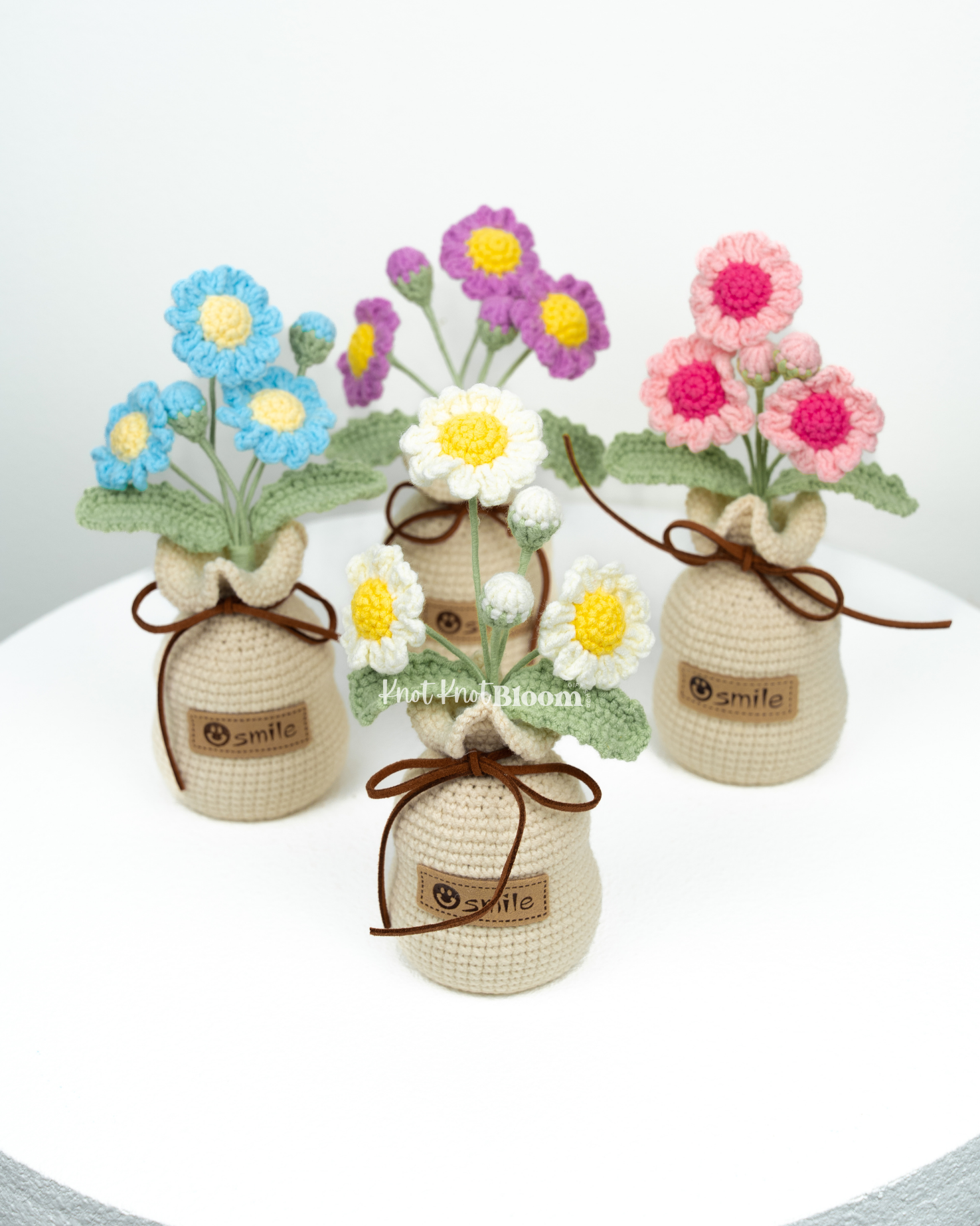 Beautiful Handmade Crochet Daisy Flowers In Pot Knitted Craft Mother’s Day Gift Birthday Christmas Gift