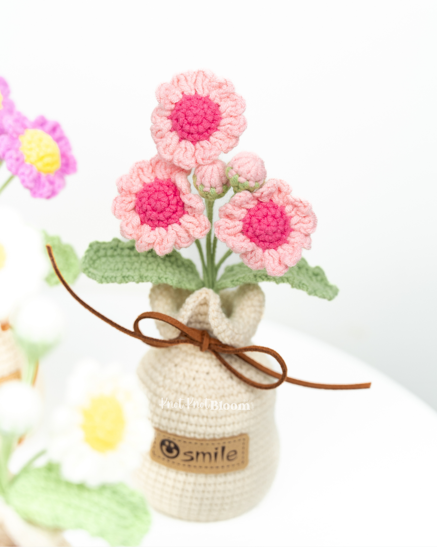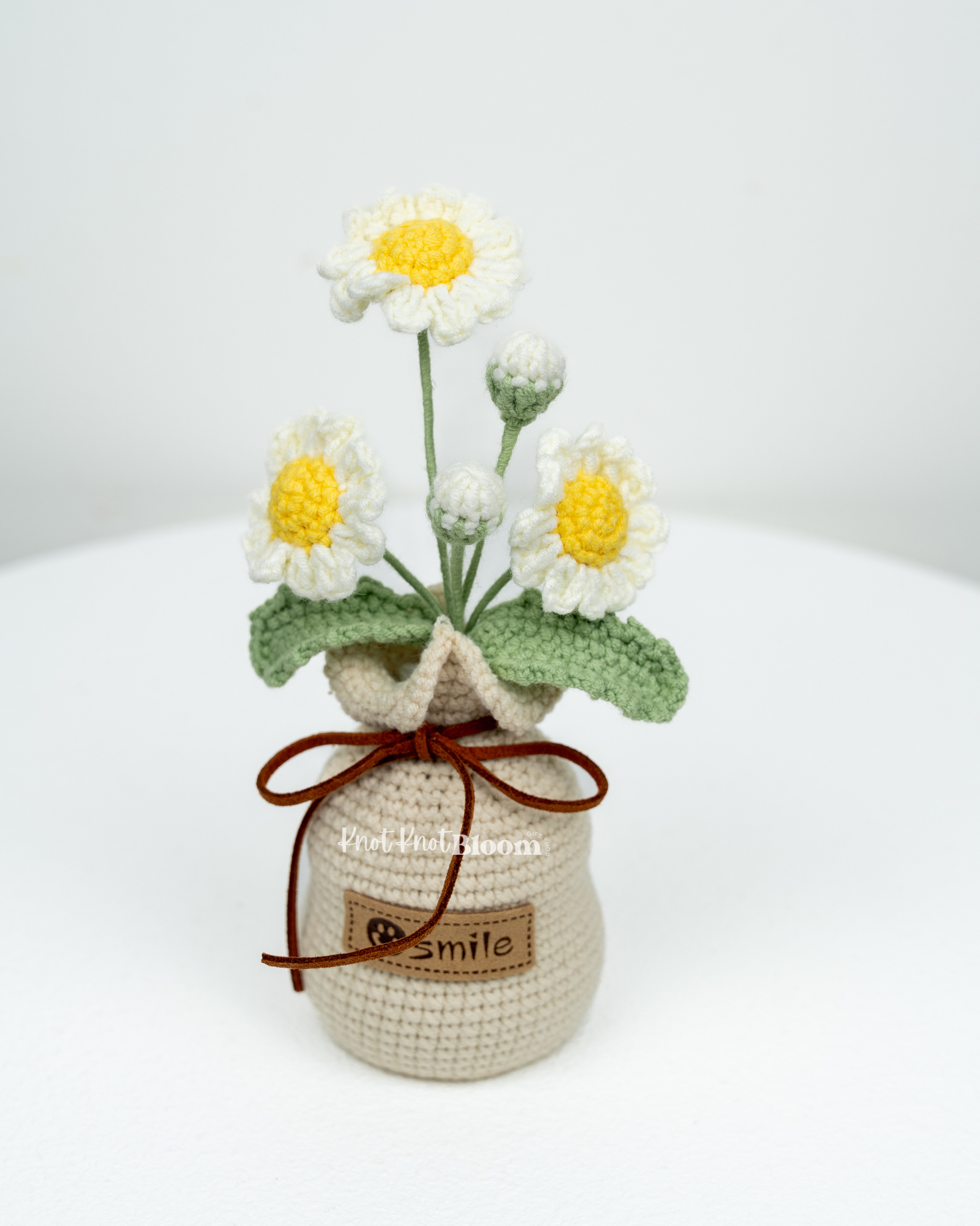 Beautiful Handcrafted Crochet Daisy Flowers In Pot