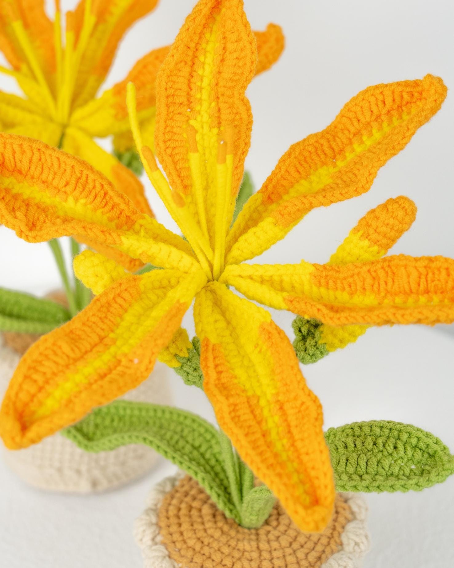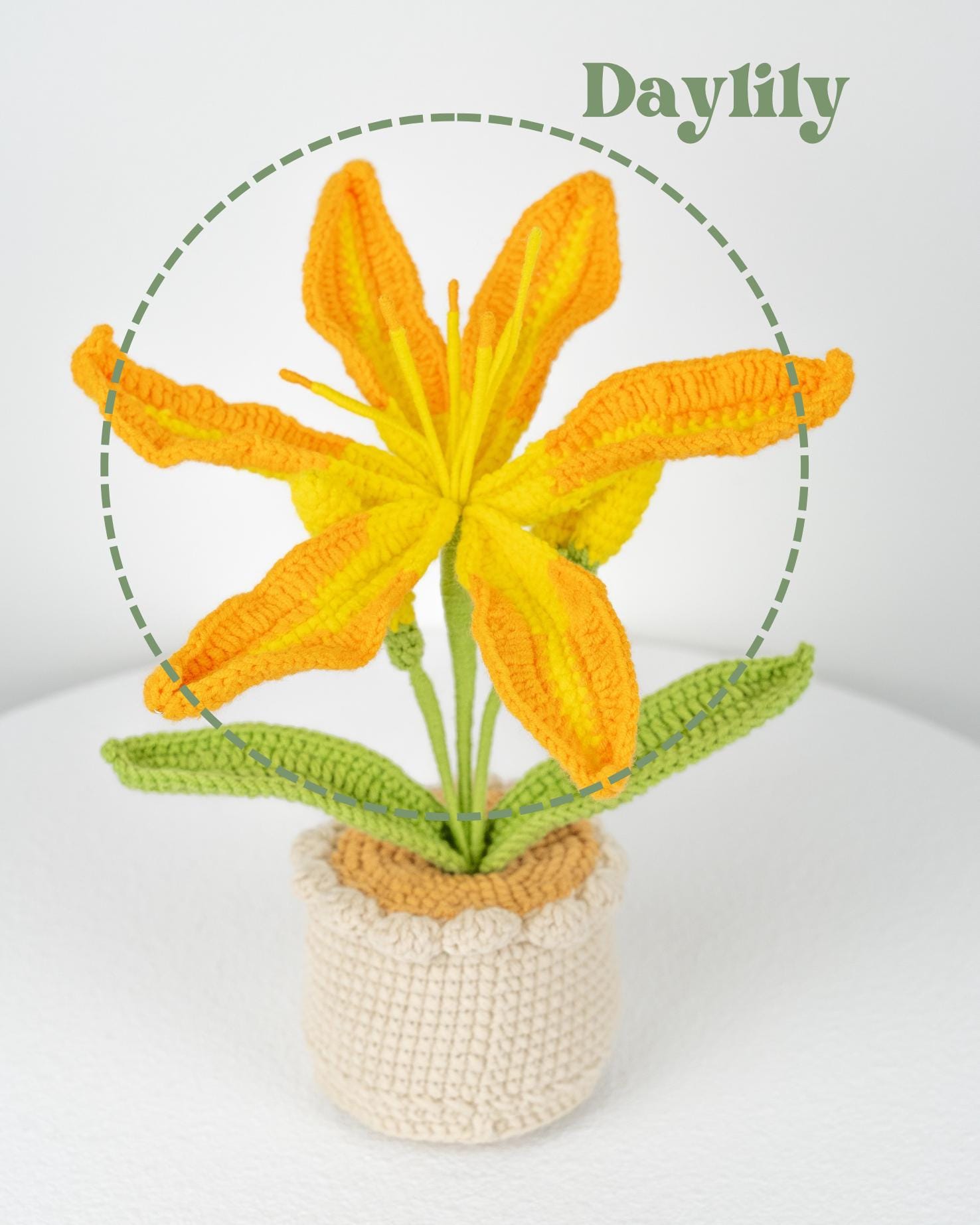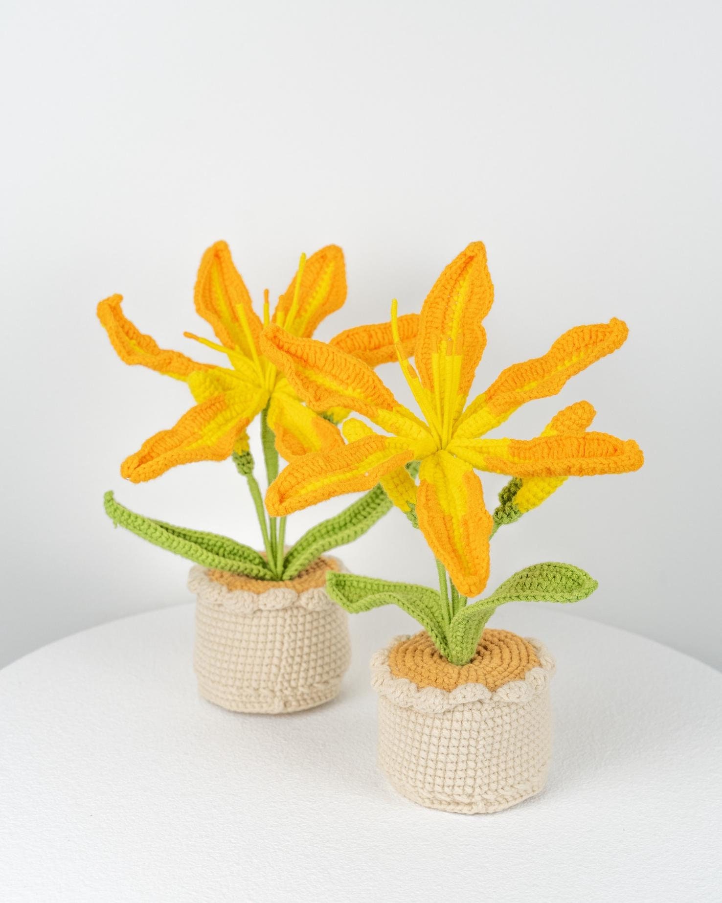 Beautiful Handcrafted Crochet Large Daylily In Pot