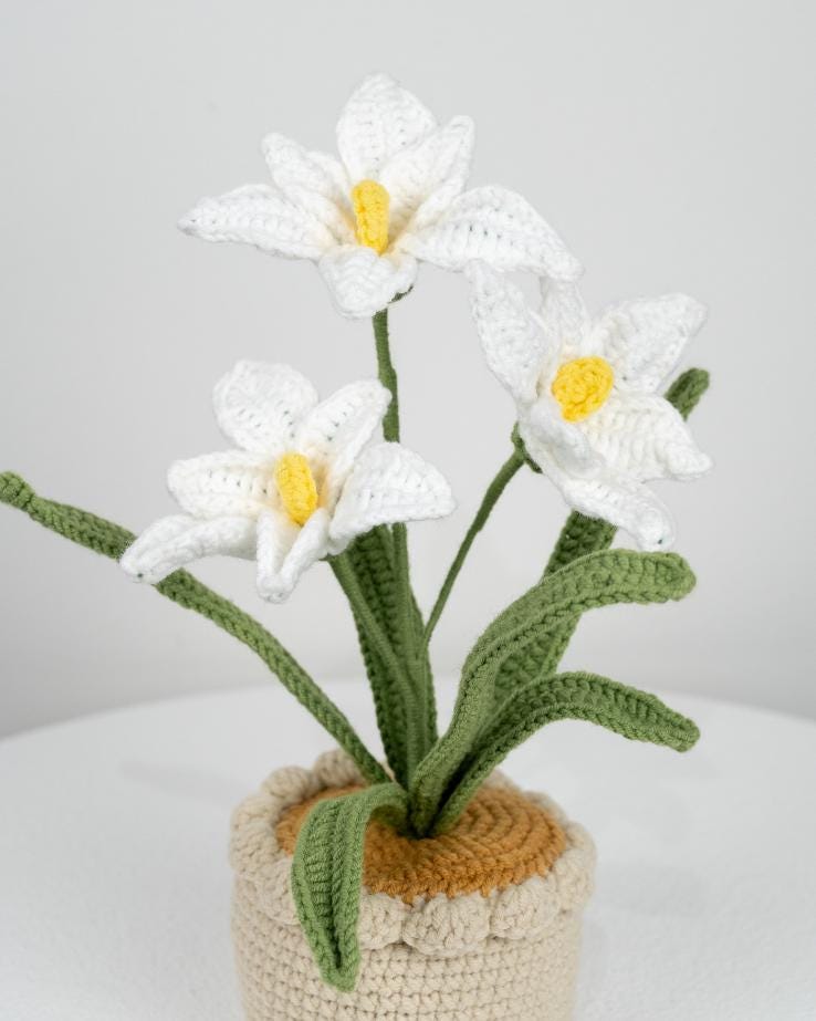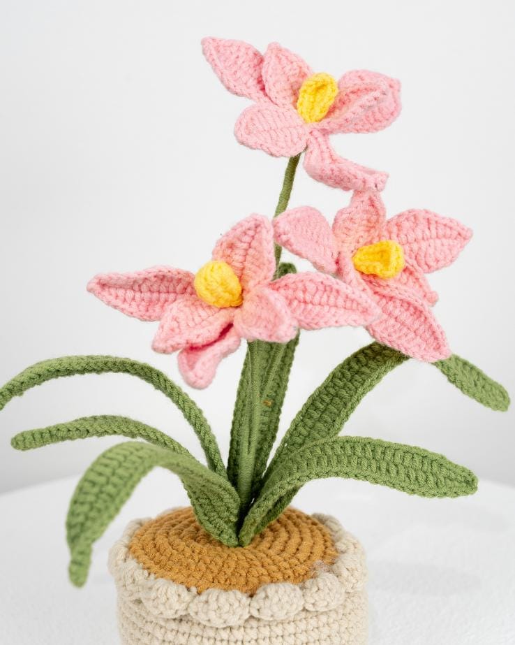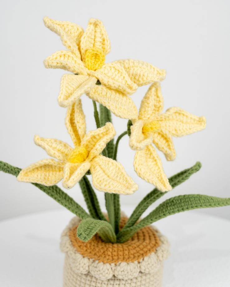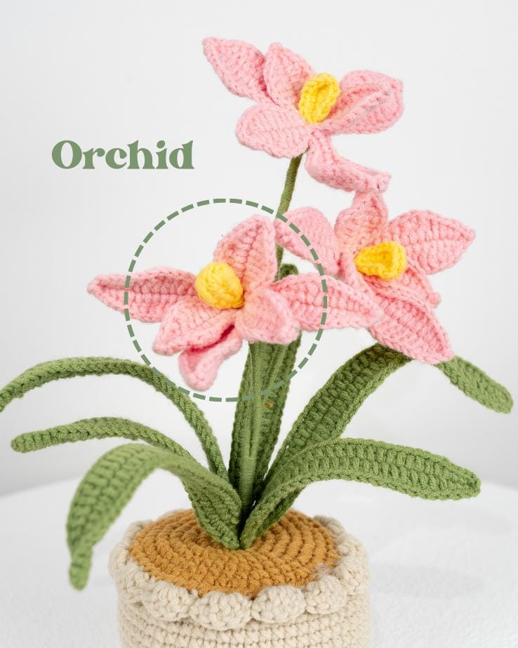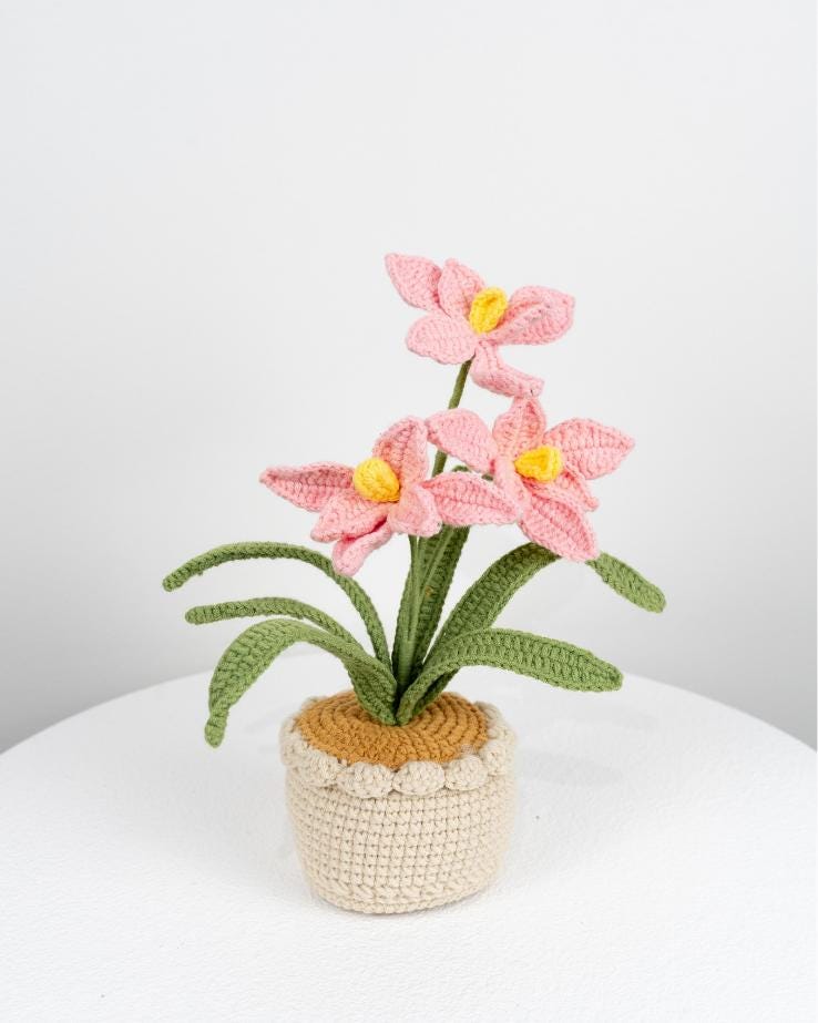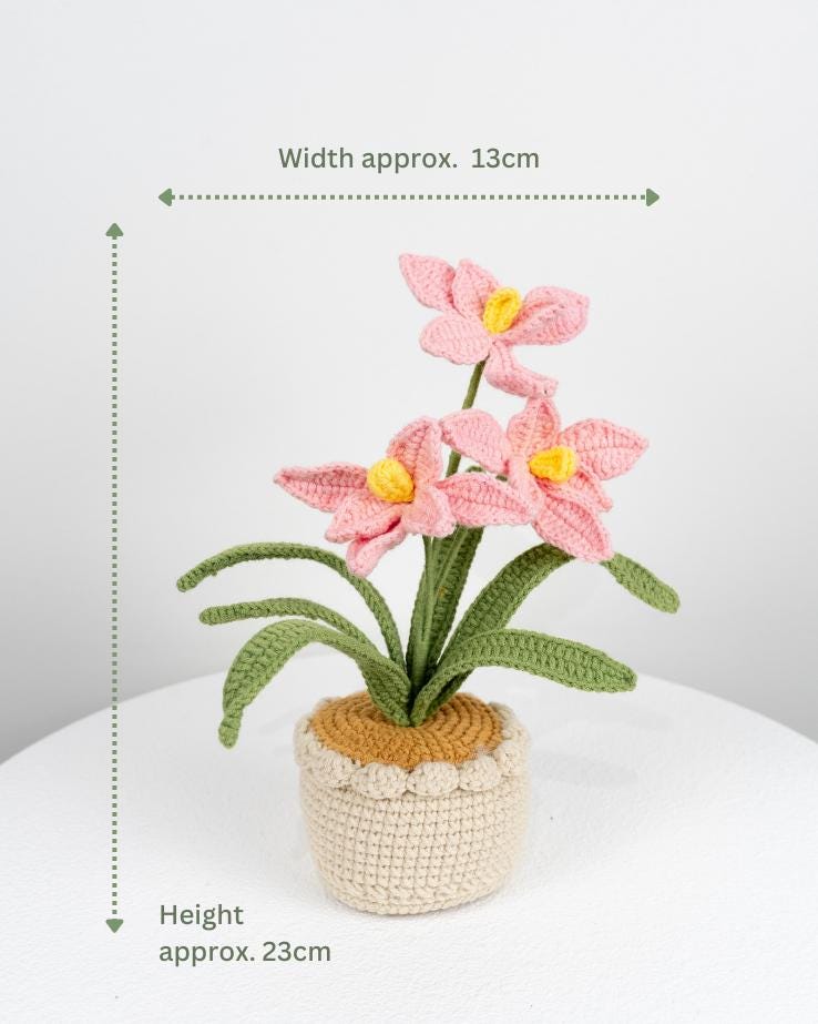Beautiful Handmade Crochet Orchid Flowers In Pot Home Decor Teacher’s Gift Thank You Gift