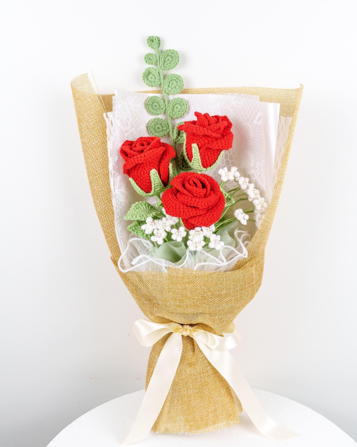 Beautiful Handmade Crochet Rose Flower Bouquet / Valentine’s Gift / Graduation Gift / Mother’s Day / Birthday / Christmas / Knitted Craft