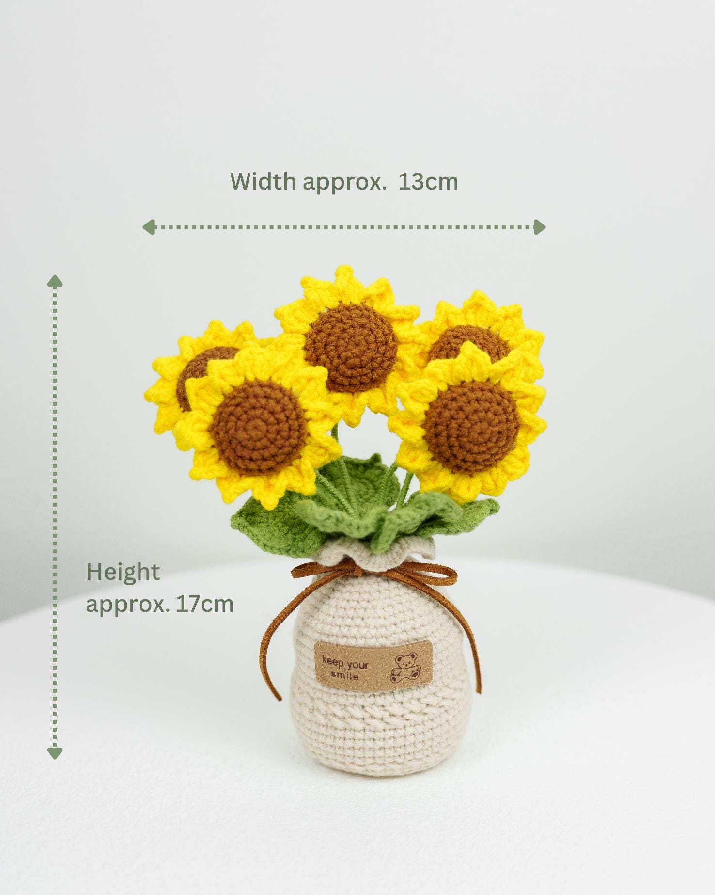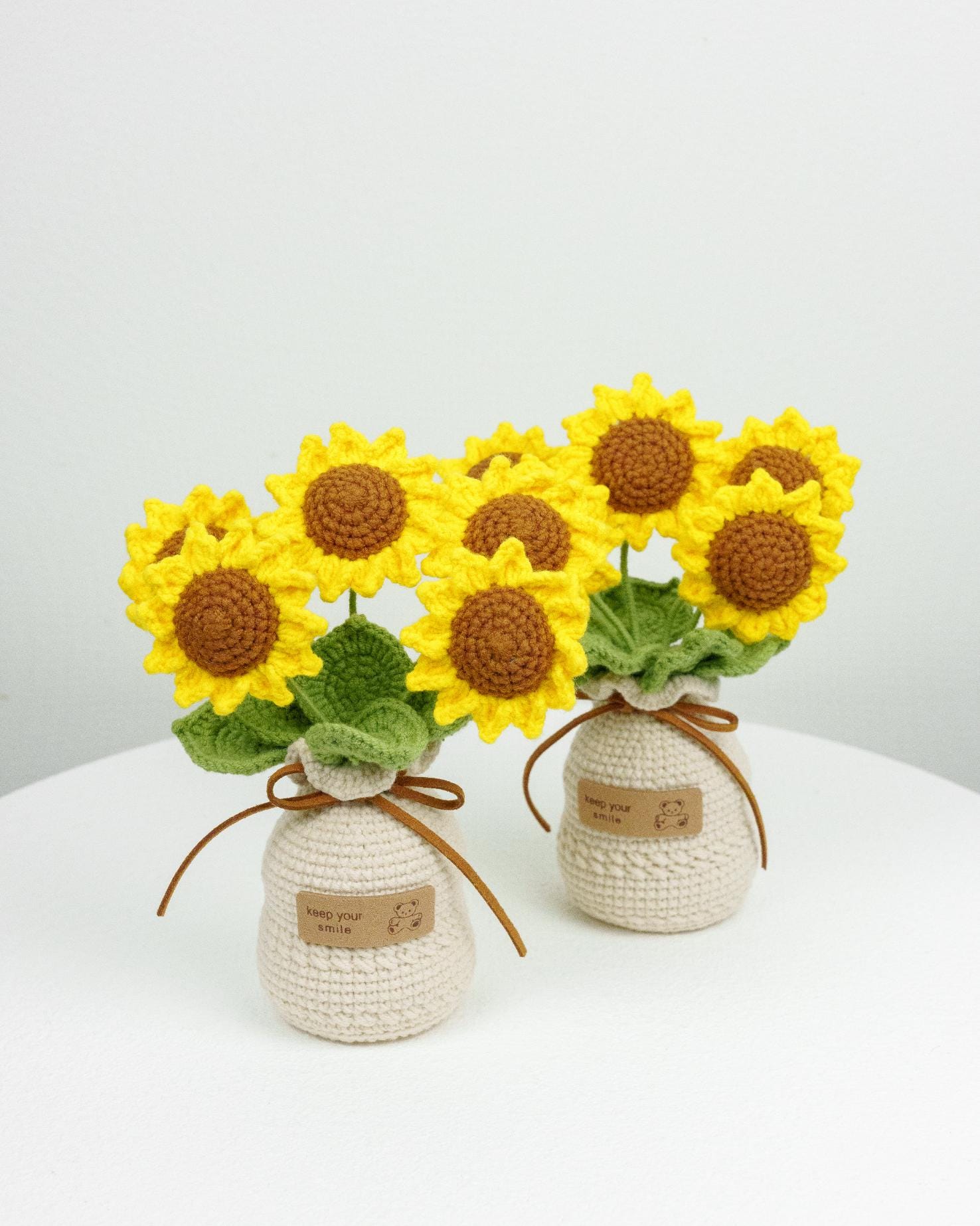 Beautiful Handmade Crochet Sunflower In Pot Knitted Craft Mother’s Day Gift Room Decoration