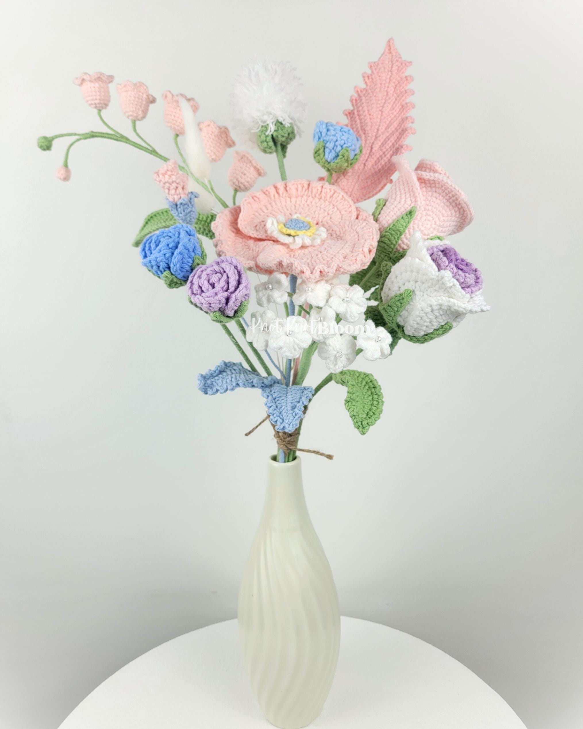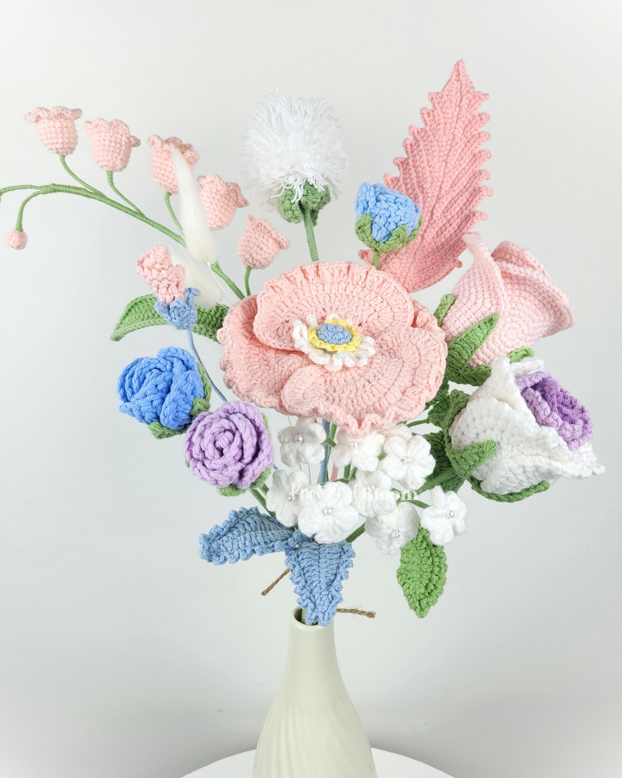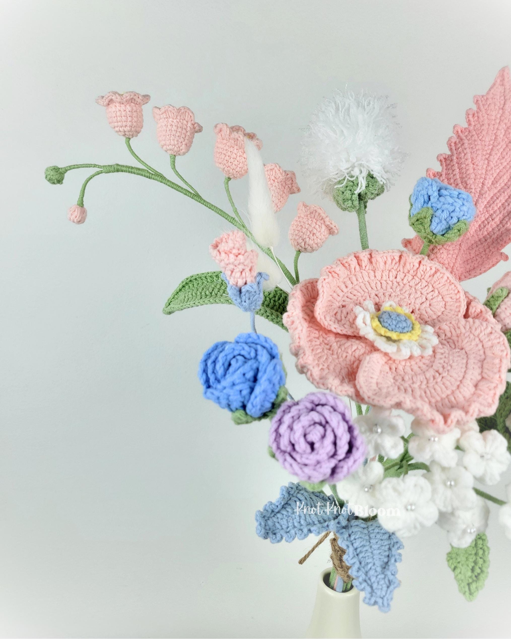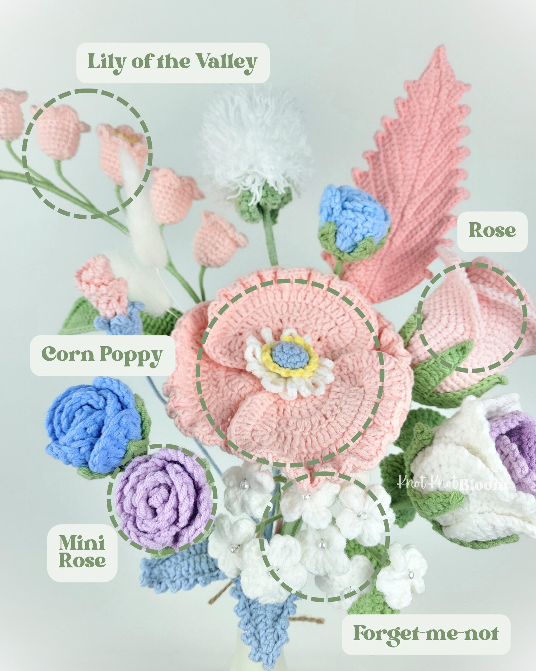 Crochet Corn Poppy Bouquet (Unwrap): Hand-Knitted Everlasting Flowers