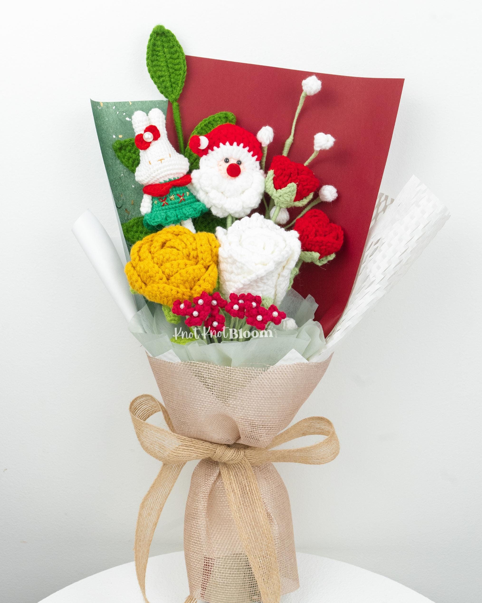 Be the first to review “Crochet Santa Rabbit Red Rose Flower Bouquet / Christmas Xmas Gift / New Year Celebration / Graduation Gift / Knitted Craft”