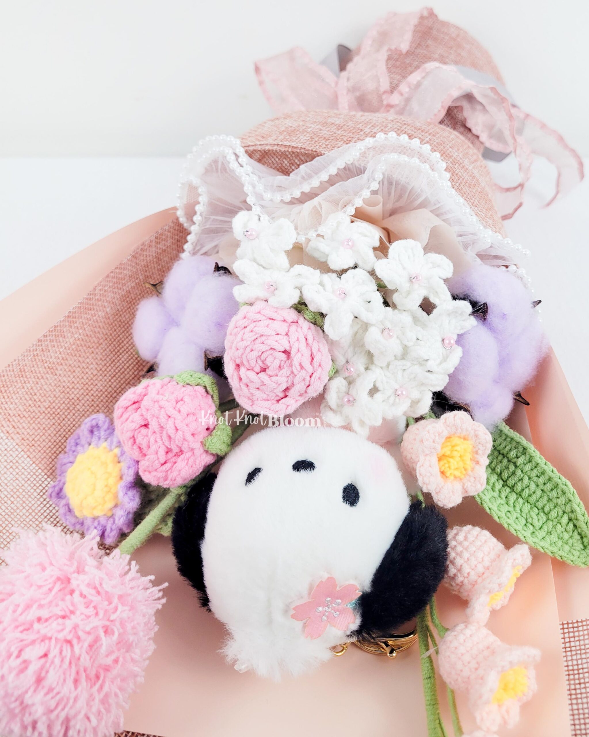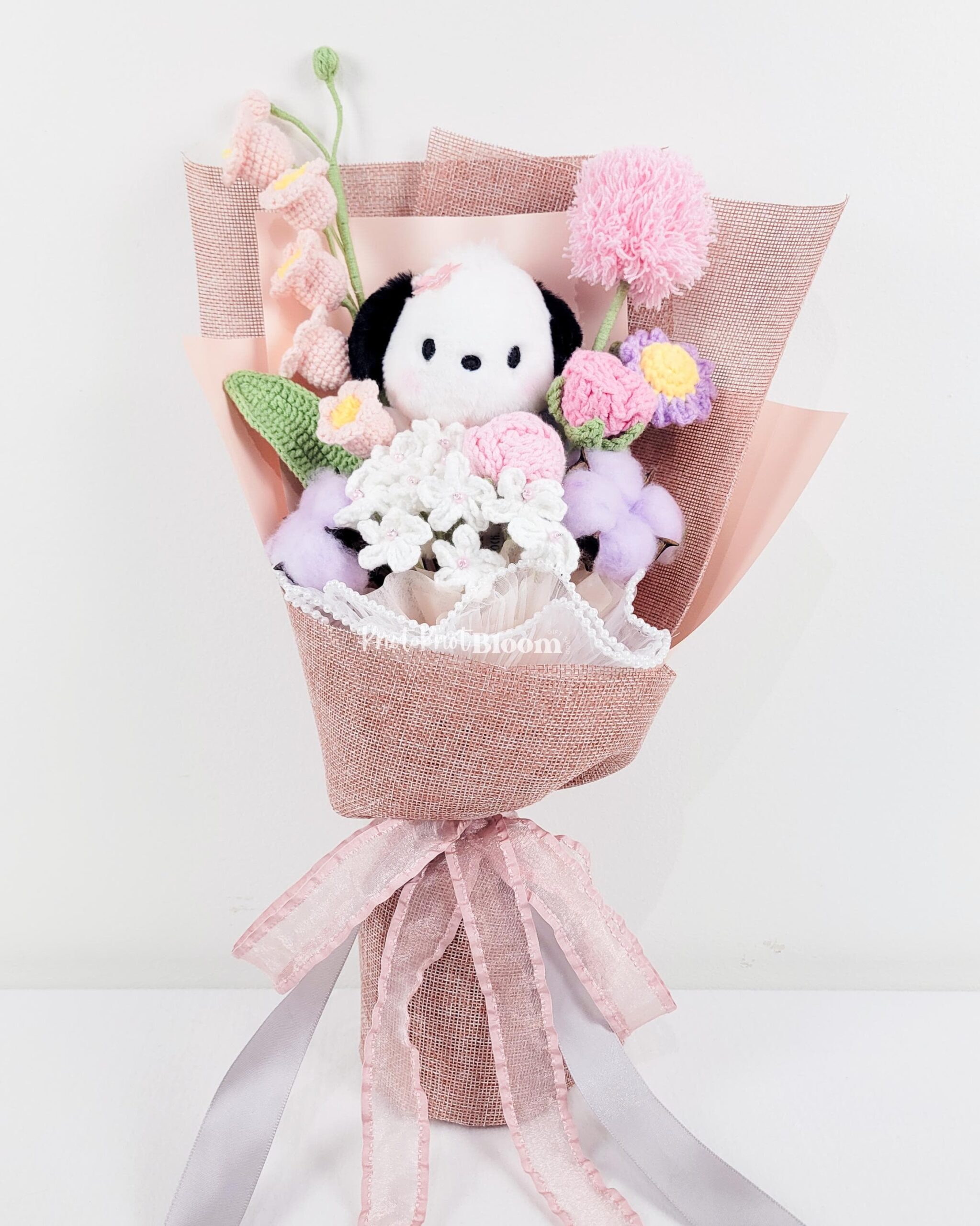 Cute Handmade Crochet Flowers In Pink Theme With PC Plushie Bouquet Graduation Gift Birthday Valentine’s Day Gift