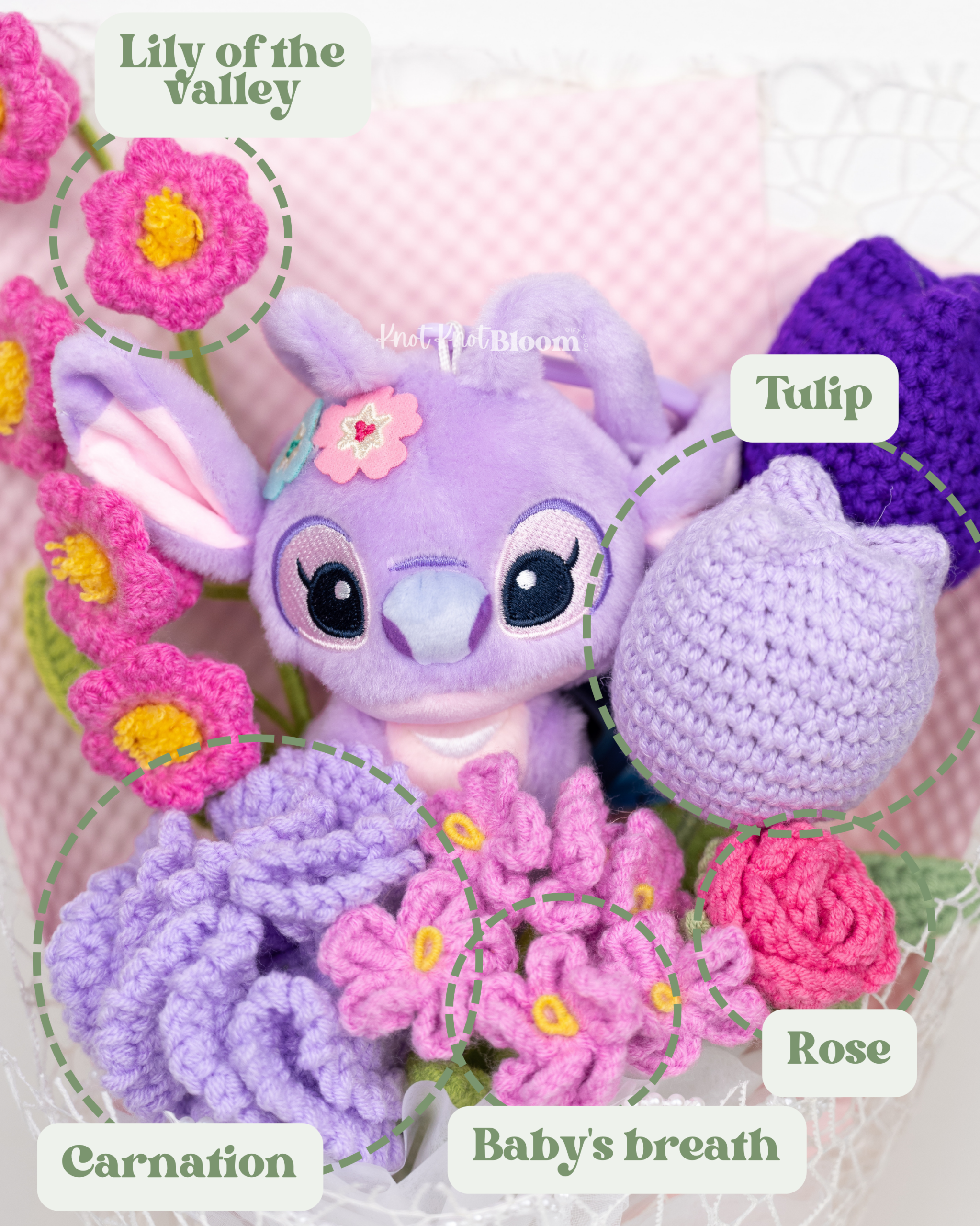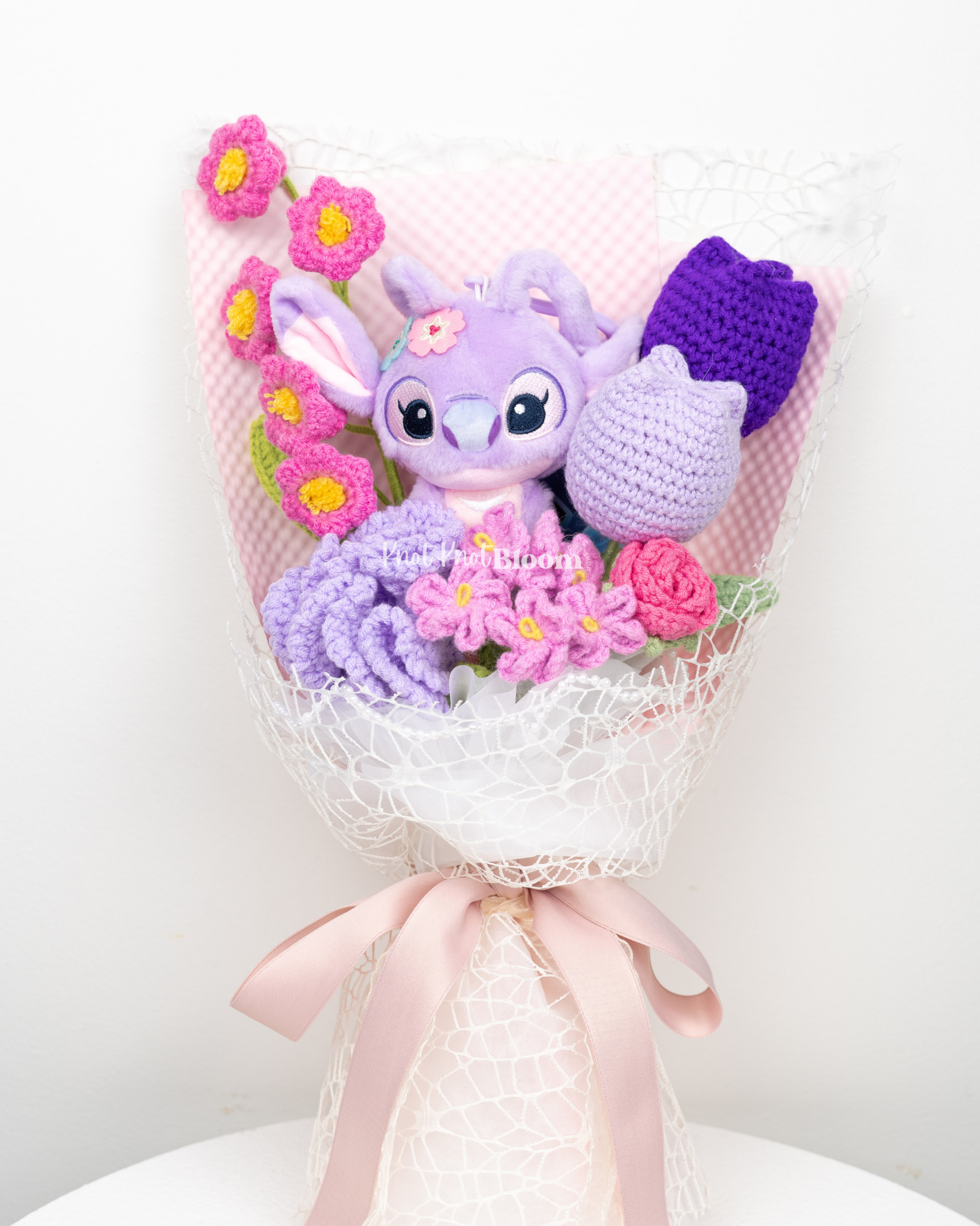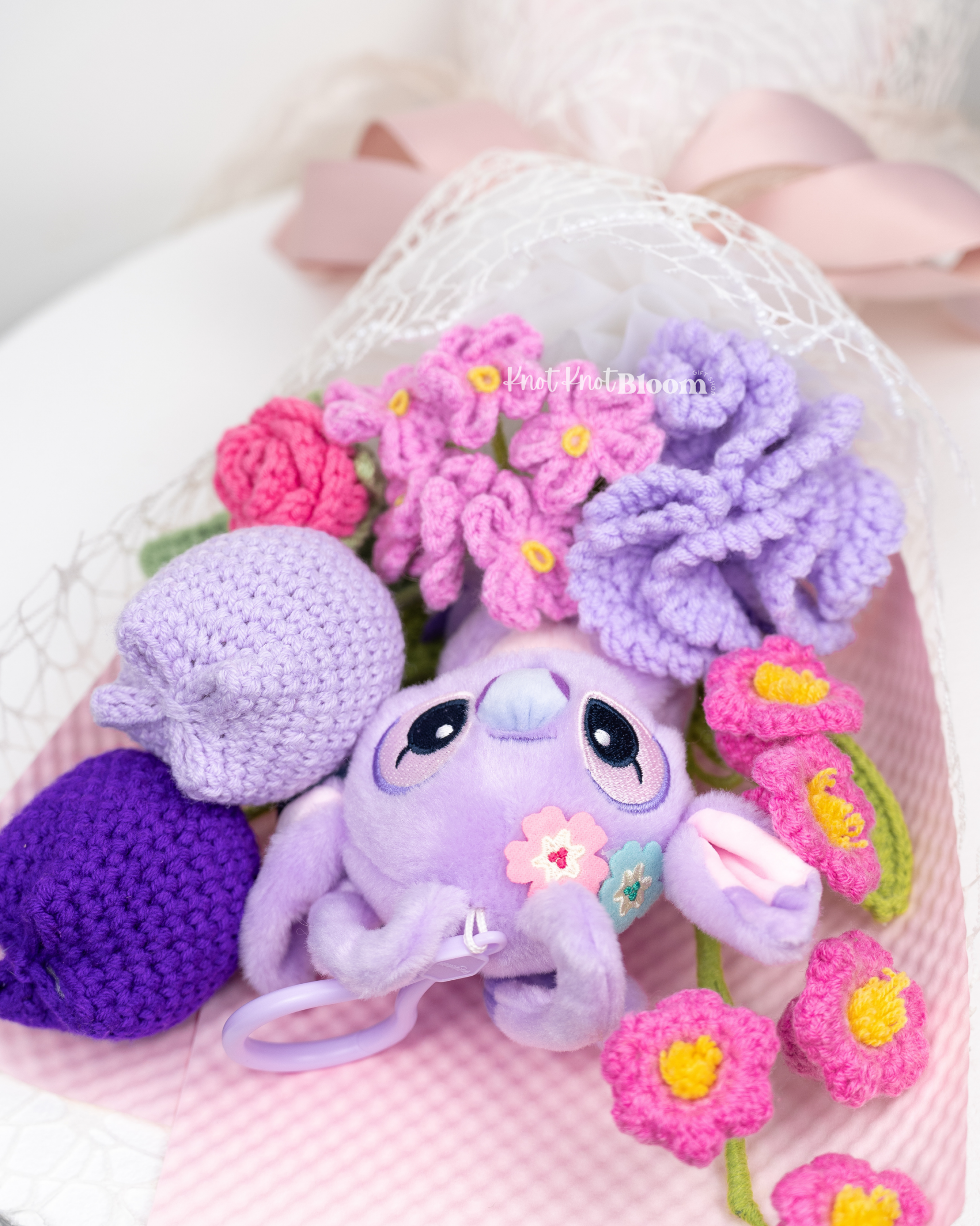Cute Purple Theme Plushie Crochet Flowers Bouquet Graduation Birthday Valentine’s Day Gift