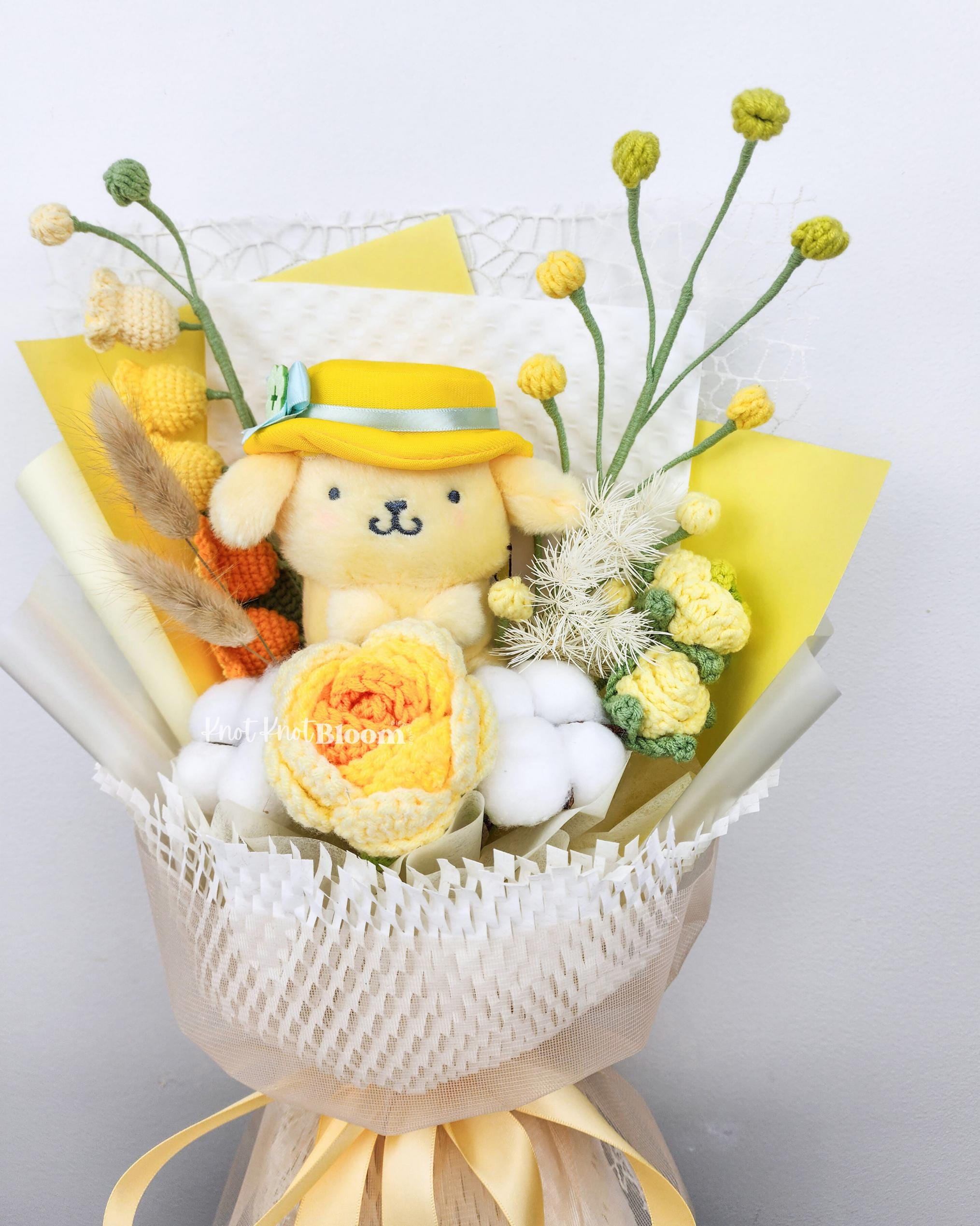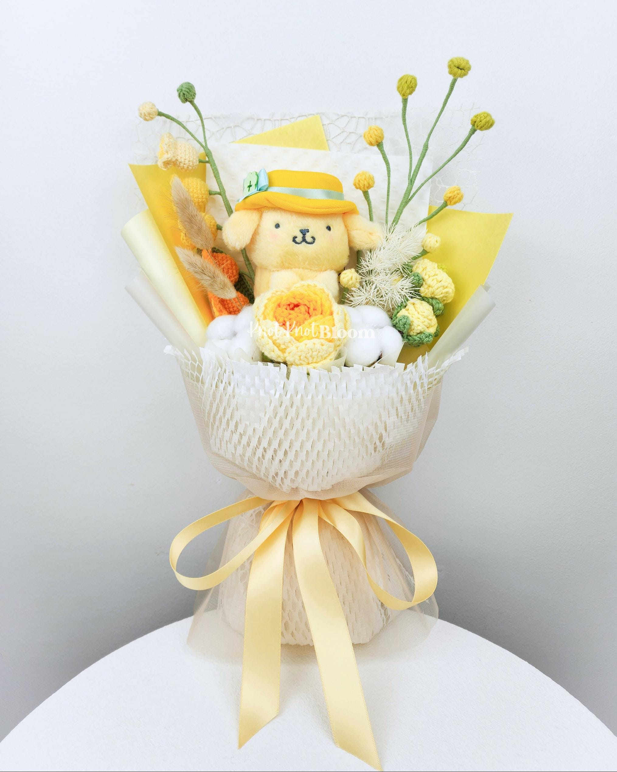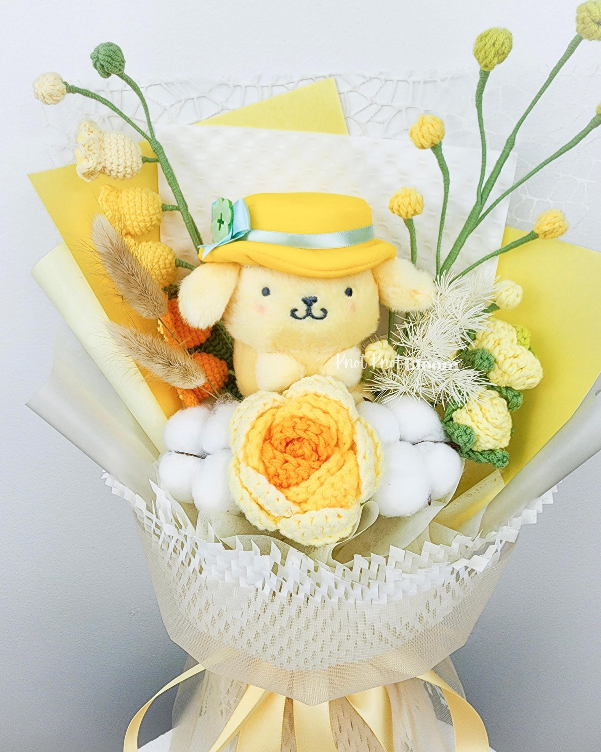 Cute Yellow Theme Yellow Plushie Crochet Flowers Bouquet Graduation Birthday Valentine’s Day Gift Knitted Craft