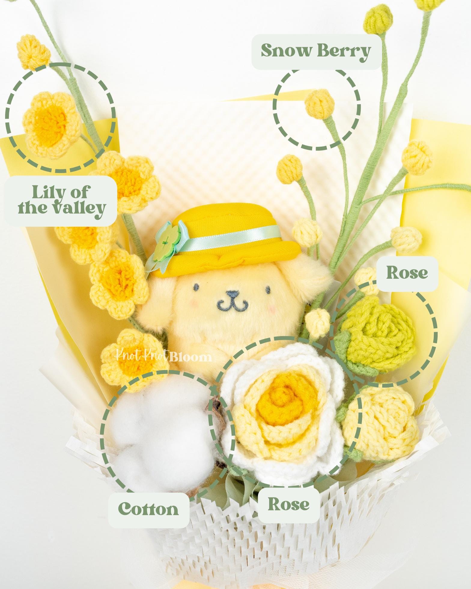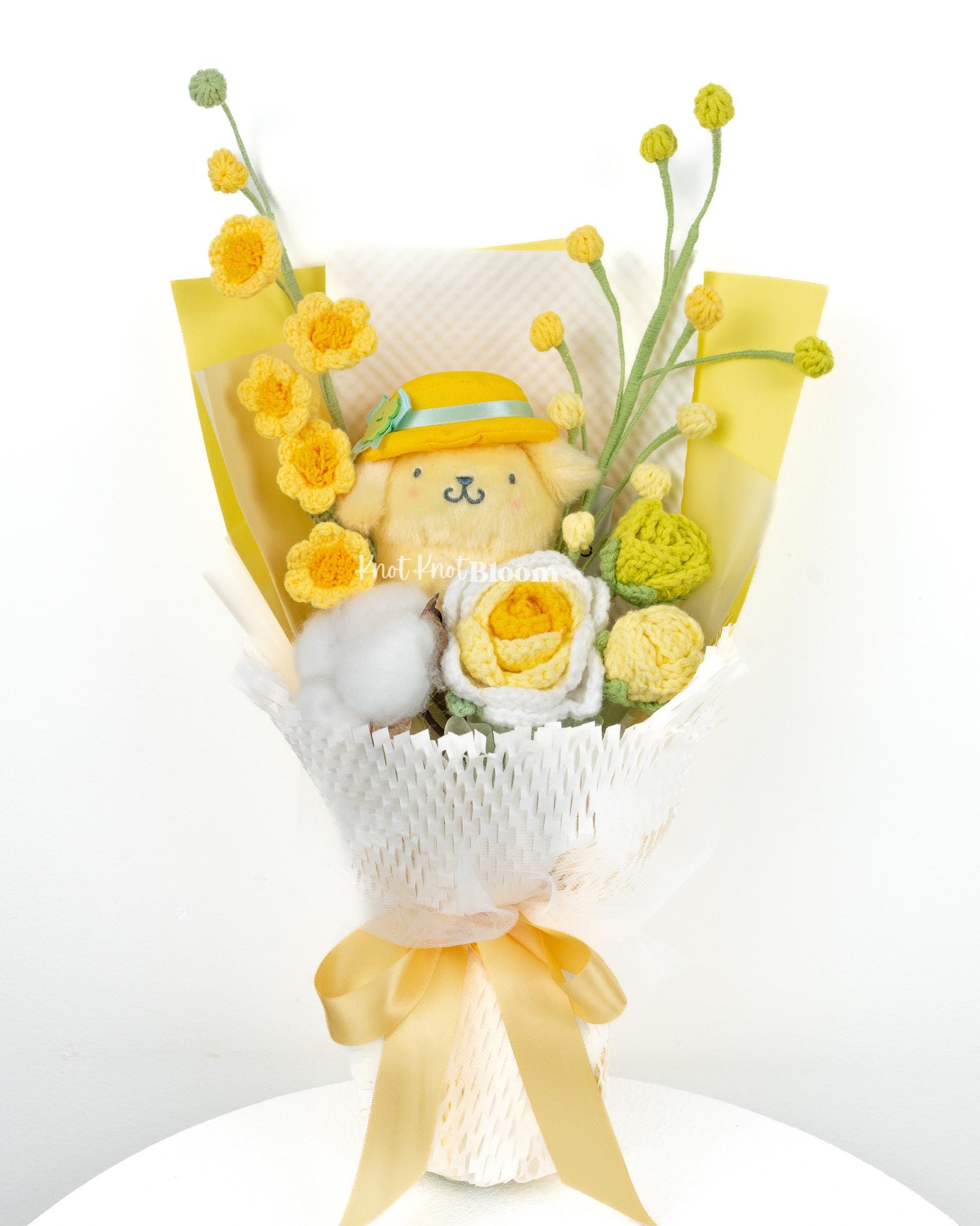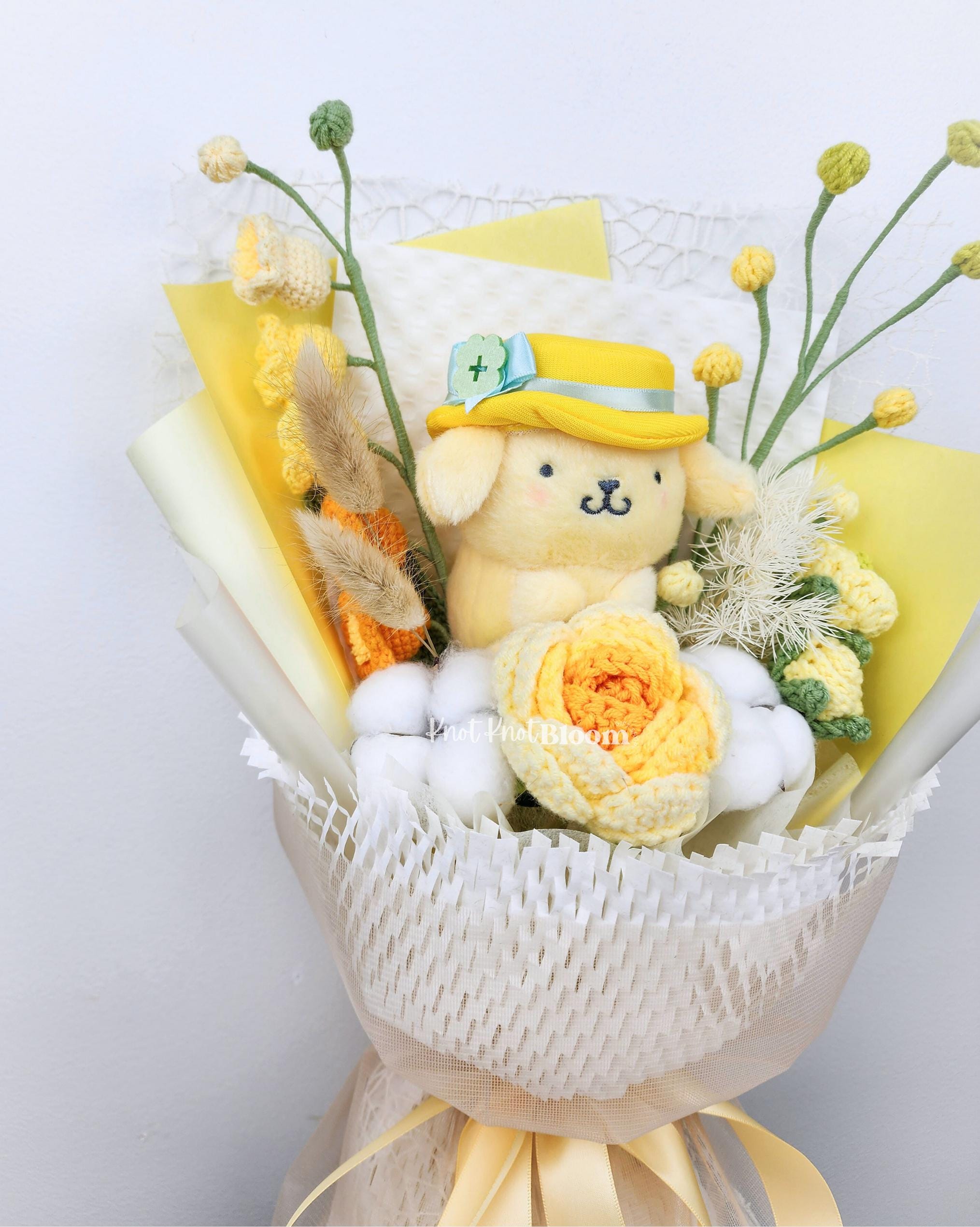 Cute Yellow Theme Yellow Plushie Crochet Flowers Bouquet Graduation Birthday Valentine’s Day Gift Knitted Craft