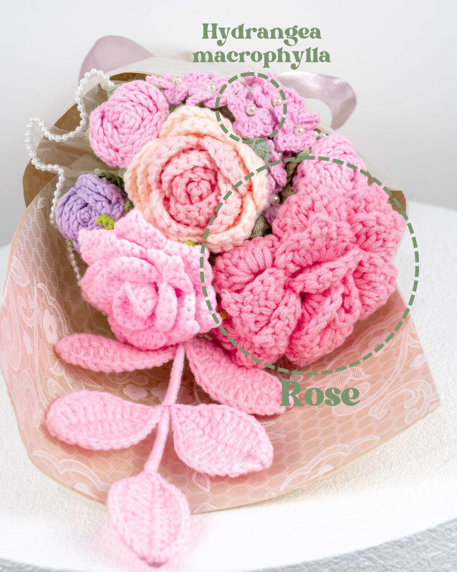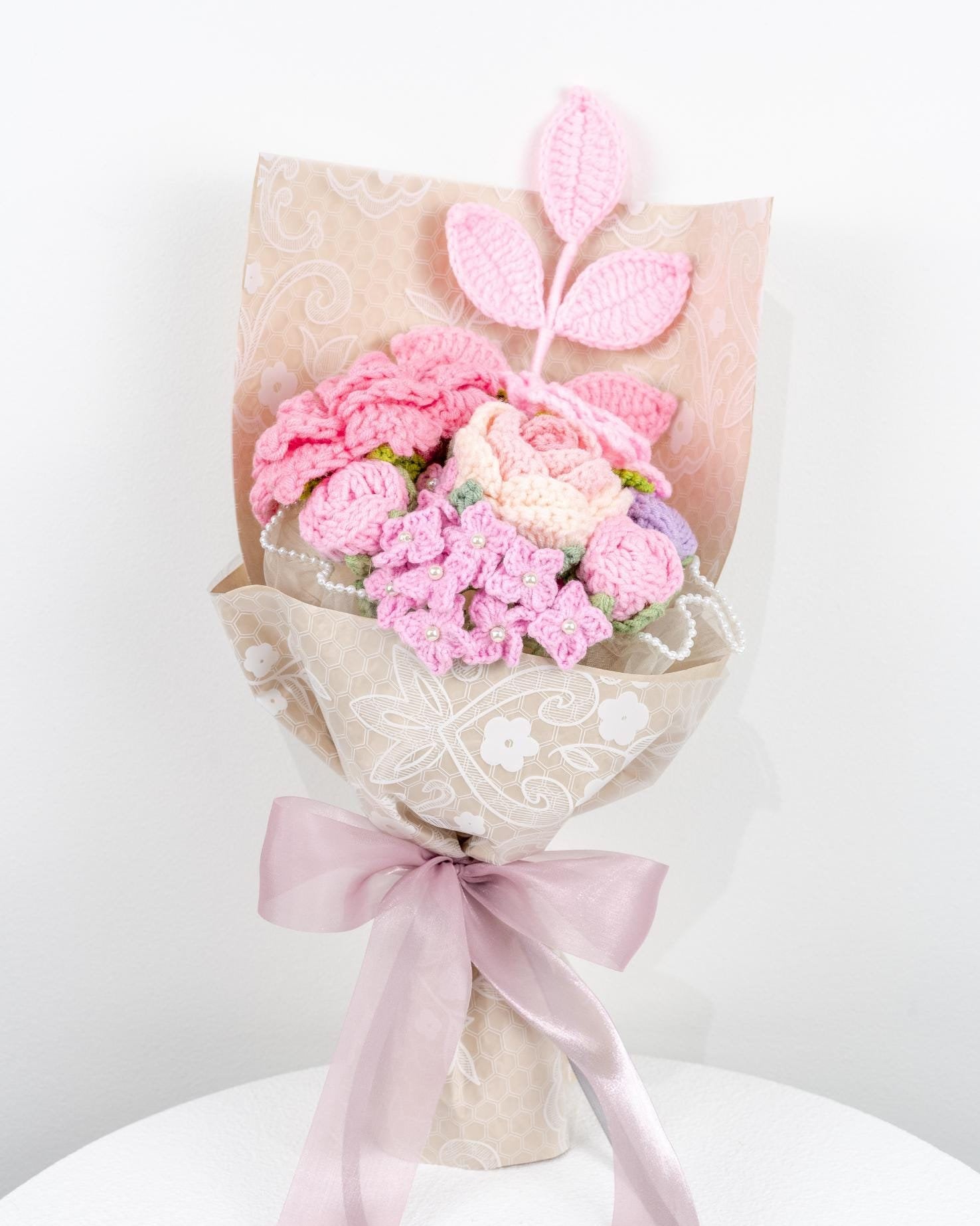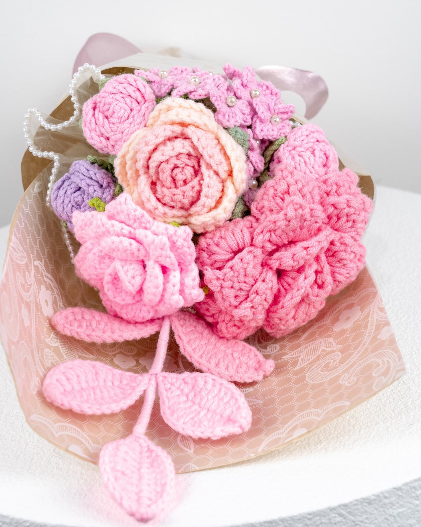 Beautiful Handmade Crochet Pink Roses Theme Bouquet / Valentine’s Gift / Knitted Craft
