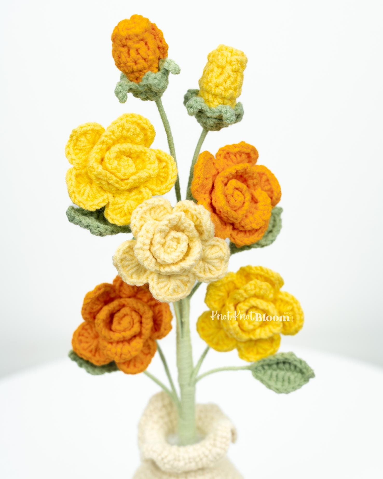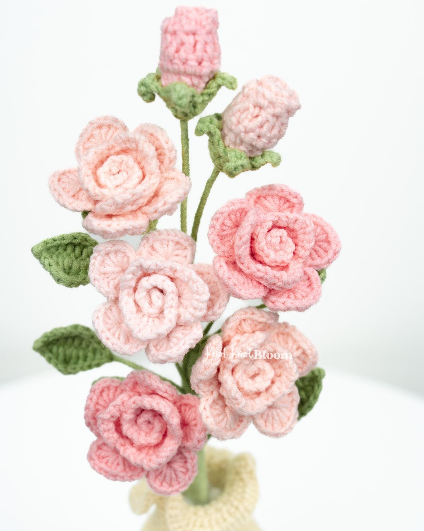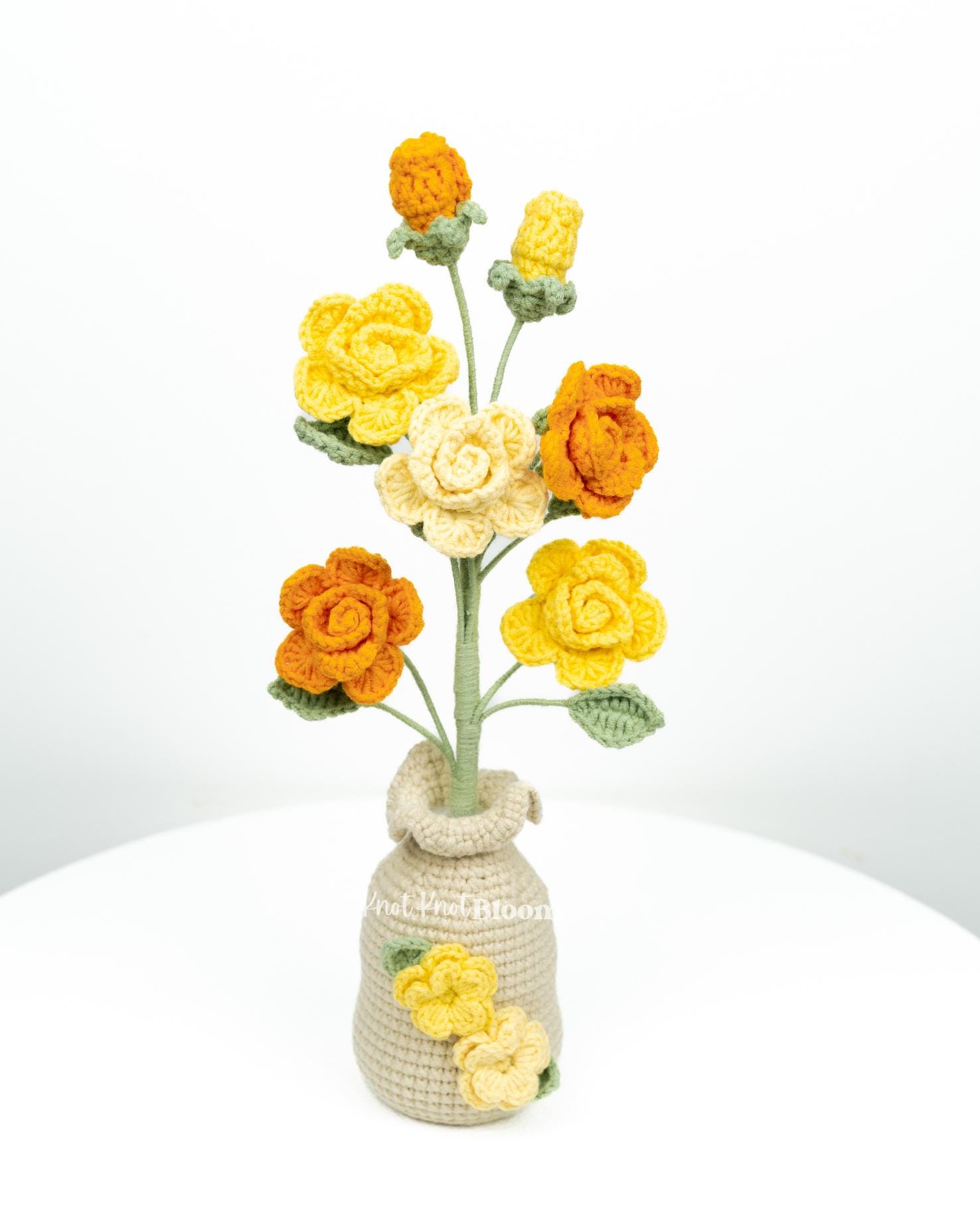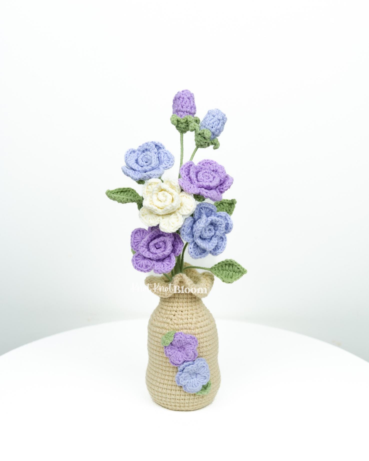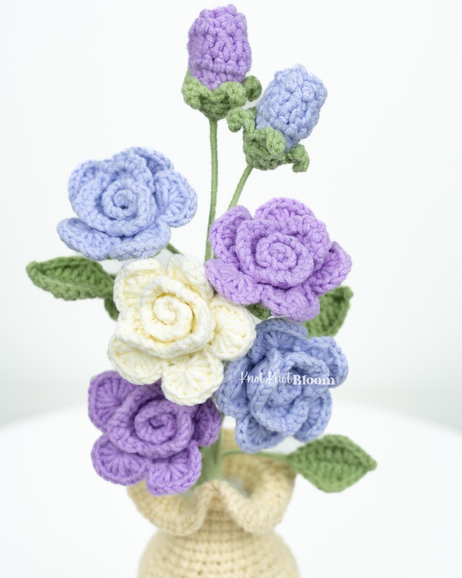 Handmade Crochet Spray Roses In Pot Knitted Craft Mother’s Day Birthday Gift Christmas Gift Room Decor