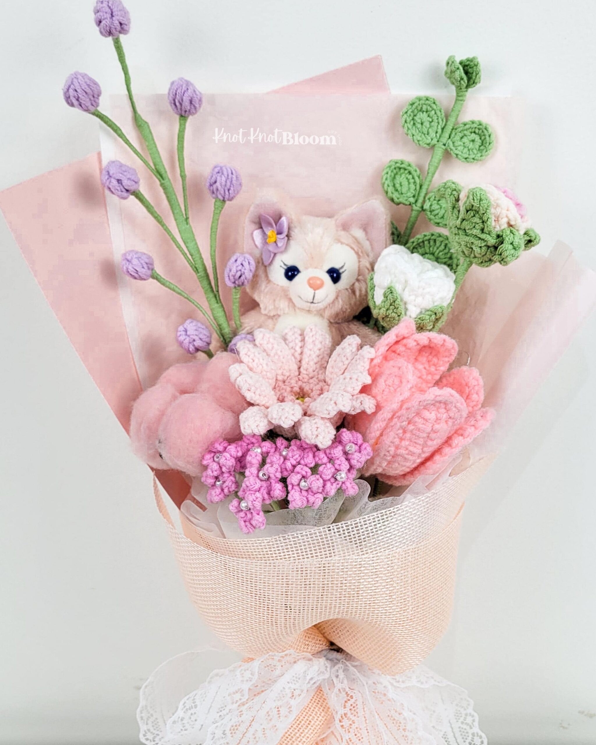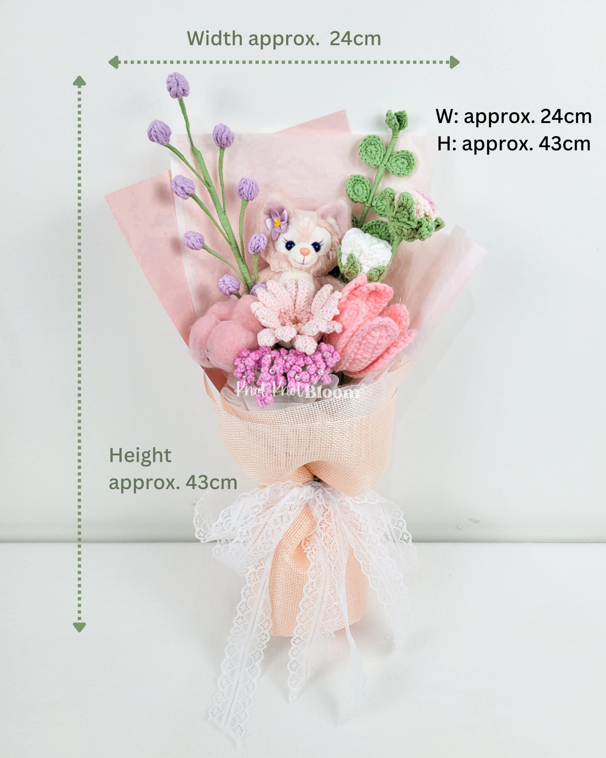 Lina Plushie With Crochet Flowers Bouquet Graduation Birthday Valentine’s Day Gift